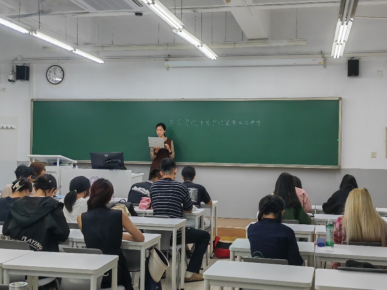 活动伊始,团支书杨涛屹详细解读了习近平总书记给新疆谢依特小学戍边支教西部计划志愿者重要回信的背景、内容和深刻内涵。她用通俗易懂的语言阐释了回信中蕴含的对广大青年的殷切期望和谆谆教诲,强调了习近平总书记对青年一代的关心关怀和对教育事业的高度重视。