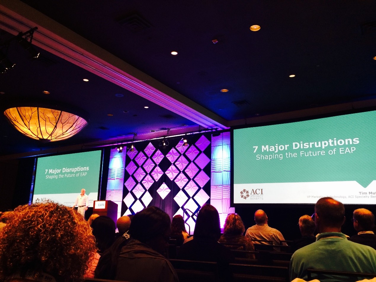 10月5日上午,Timothy Mutrie报告了影响EAP未来发展的七大主要干扰因素:EAP电子产品使用的健康规则、服务应按需供给、机器时代的到来、迎接新生代劳动力、办公方式的灵活转变、EAP的身份定位:融合或独立。Timothy还提出员工帮助计划要跟上科技发展步伐,重新构想如何提供更完善的服务来满足当今多元的变化。