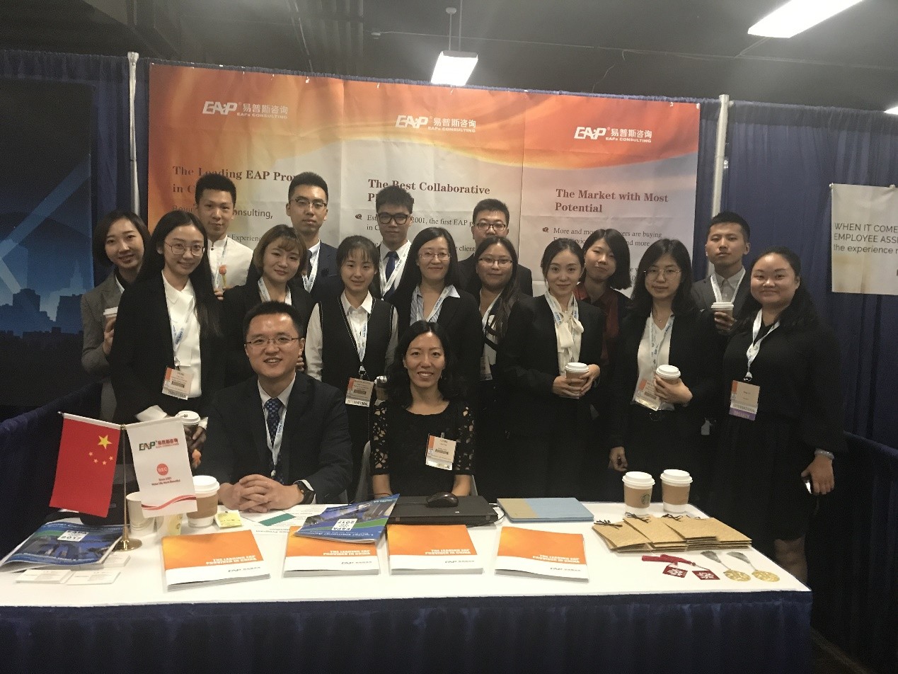 同学们在我国唯一EAP参展商-北京易普斯咨询有限责任公司展台交流留念。此次会议,北师大金牌影院 2017MAP美国实践行同学们不仅了解了EAP在全球的发展现状及最新理念,同时还有大量机会与来自世界各地的EAP专家学者交流探讨,收获满满。 |