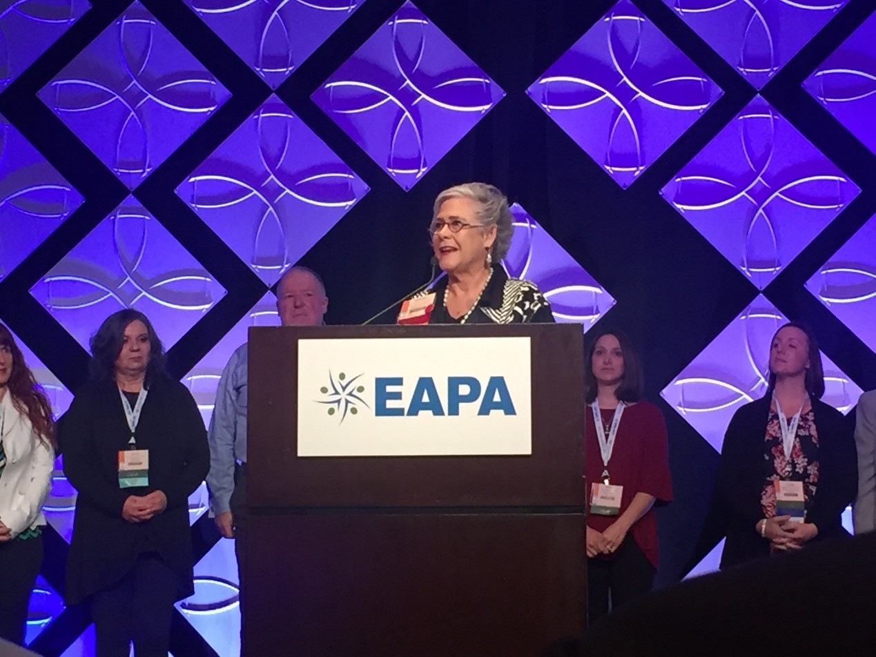 大会议程·第一天 开幕式 洛杉矶时间上午9点开幕式准时举行,由现任EAPA主席Tamara Cagney主持,并回顾了EAPA的历史,阐述了在当今世界环境下EAP的发展现状和所面临的挑战,介绍了本次会议举办工作坊和大师课的各位专家学者。随后,EAPA现任执行主席Greg DeLapp向两位学者颁发了EAPA相关成就奖项,并针对如何提高EAP项目的评估水平、降低EAP成本、在人数众多的工作场所中合理应用EAP技术、改进和提升EAP项目等内容发表了观点。