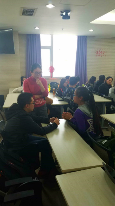 2018年3月13日下午,后主楼1318,一场由金牌影院 生活指导室组织,全体大一宿舍长们参加的人际沟通培训在欢笑声中开始展开。本次宿舍长培训以“学会倾听和表达,以非暴力沟通的方式”为主题,旨在帮助大一宿舍长更好地处理宿舍人际关系,生活指导室负责人黄利老师全程带领此次培训。 本次培训有三个环节:10分钟的热场小游戏;90分钟的互动体验式练习;15分钟的培训反馈。 培训由热身活动“say hello的四种方式”拉开帷幕,大家先两两面对面分内外圈站好,然后用1代表微笑、2代表握手、3代表拥抱、4代表抱起来转一圈,每个人面对对方用手指出拳,每个数字代表自己想和对方打招呼的方式,然后取两人中数字小的所对应的方式来进行互动,很快,伴随着微笑,握手与拥抱,各个宿舍长之间迅速拉进距离,有惊喜有惊讶,第一对抱起来转圈的掌声,消弭了大家的矜持和距离,在欢笑声中似乎中午连轴上课的疲惫也已被遗忘掉。 正式培训主要有两个主体练习,一个是三轮次的角色扮演,用“你感到__,是因为__,你希望__”练习反馈式倾听,通过两人一组进行角色扮演来详细地模拟学习生活中可能会遇到的对话,用三次截然不同的沟通方式进行交流,强调体会“感受”这个概念,每个宿舍长在角色扮演中都有自己专属的身份,倾听者和分享者,倾听者会以建议、劝慰、劝告、分析、贬低、纠正、说服或者硬性指导等不同的方式对待分享者的问题共享,从而让彼此体验不同的感受。在同学们交流沟通的同时黄老师也在仔细地倾听,帮助同学们分辨微妙的感受和背后真正的需求。 反馈式倾听强调不带观点和评判地认真倾听对方观点后,了解对方的想法和感受,并且按照自己的理解将对方的想法和感受说出来,再进行求证,从而帮助双方合理、积极地管理自己的情绪,有效解决问题。正如赫拉别恩定律所强调的,在人际沟通中,真正产生影响力的,不是语言内容本身,而是语音语调、肢体动作,所以我们的感受与表情动作是决定我们沟通顺利与否的重点,我们需要注重的是对方的内心感受,而非外在行为。 另一个主体练习是学习诚实地表达情绪,用“我感到__,是因为__,我希望__”来发掘自己真实的感受和需求,大家通过“校园漫步”活动,以两人一组的方式一边放松地行走,一边进行私密性的交谈,能看出同学们都在这种闲适而私密的沟通中有所领悟有所感受,整个活动气氛一度又达到了新的活跃点。 最后进行的总结中,主动发言的同学真诚讲述了自己的收获和困惑,大家都感到提升自我,增强沟通能力无法一蹴而就,是一个系统和过程,通过这次培训让大家开始有意识地觉察和体会自己和他人的感受,探寻背后的真实需求,对于新学习的理念和工具,哪怕有些生疏和别扭,也开启了进一步探寻解决人际困扰、合理自我表达的更多可能性,对于促进宿舍的关系和完善自己的人际沟通技巧有着积极的意义。
