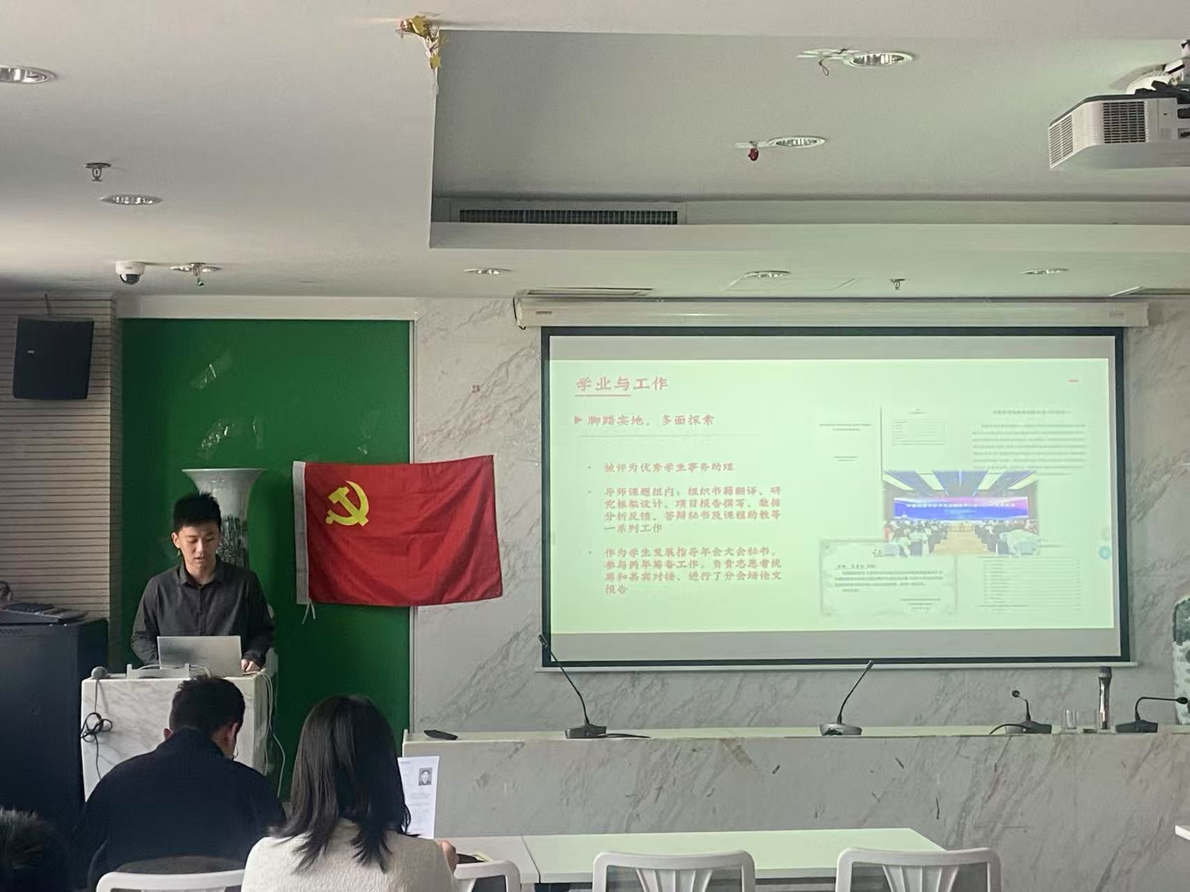 2025年3月9日9时,金牌影院 2024级学术硕士第二党支部于后主楼1318顺利开展本学期发展对象支部评议大会。本次会议由程先楷同志主持,支部8位正式党员和8名发展对象到场参会。 发展对象评议会通过支部内民主评议,全面考察积极分子的思想和具体表现,并为其发展评审材料提供改进建议。与会党员会依据答辩情况评分,支部结合日常表现确定本次推荐参加学部评审的发展对象。 首先,全体起立,齐唱《国际歌》。