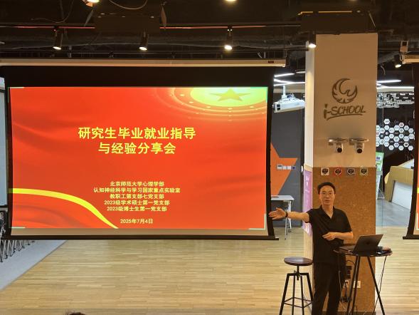 2025年7月4日19时,金牌影院 金牌影院 硕博就业经验分享会暨党团班活动在金丰和A座三层路演厅顺利举办。本次活动由金牌影院 金牌影院 认知神经科学与学习国家重点实验室、教工第七党支部、2023级学术硕士第一党支部与2023级博士生第一党支部联合主办。 本次分享会旨在深入贯彻落实《中共中央、国务院关于实施就业优先战略促进高质量充分就业的意见》精神,助力青年人才高质量发展,充分发挥教师党支部在人才培养中的示范引领作用。活动邀请了近年来实验室优秀毕业生代表:谢亚培、江亚亚、赵洲、武星辰,围绕他们在高校、科研机构、政府机关及知名企业等不同领域的求职经历、工作体会与宝贵经验进行分享,助力在读研究生明晰职业方向、提升就业竞争力。 分享会由教工第七党支部书记、2023级博士生1班班主任夏明睿老师主持,他对活动的意义和整体议程作了简要介绍。分享会分为两个主要环节:嘉宾经验分享与互动答疑。出席活动的还有国重实验室辅导员冯小霞老师、2023级硕士生班主任陈姚静老师。