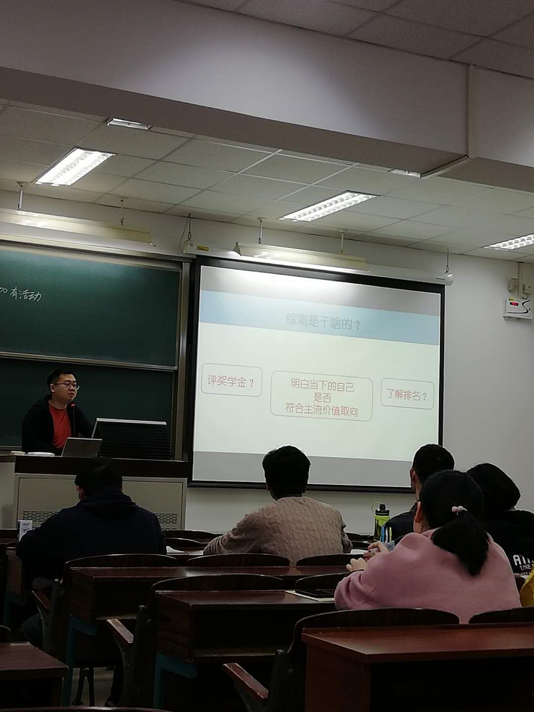 2019年3月22日上午10时,金牌影院 2018级本科生年级大会在电子楼106教室准时开始,主持人为黄利老师。 在黄利老师简短的开场白之后,张照鹏老师向大家讲述了综测那些事儿、奖学金事宜和对征兵政策的解读三大块。综测的相关内容有综测用途、综测的具体计算方法、成绩算法和一些注意事项。谈及征兵政策,张老师则细说了兵役登记与征兵这件的关系和区别、征兵对个人发展的意义、征兵优惠政策、征兵意义以及应征入伍的条件。