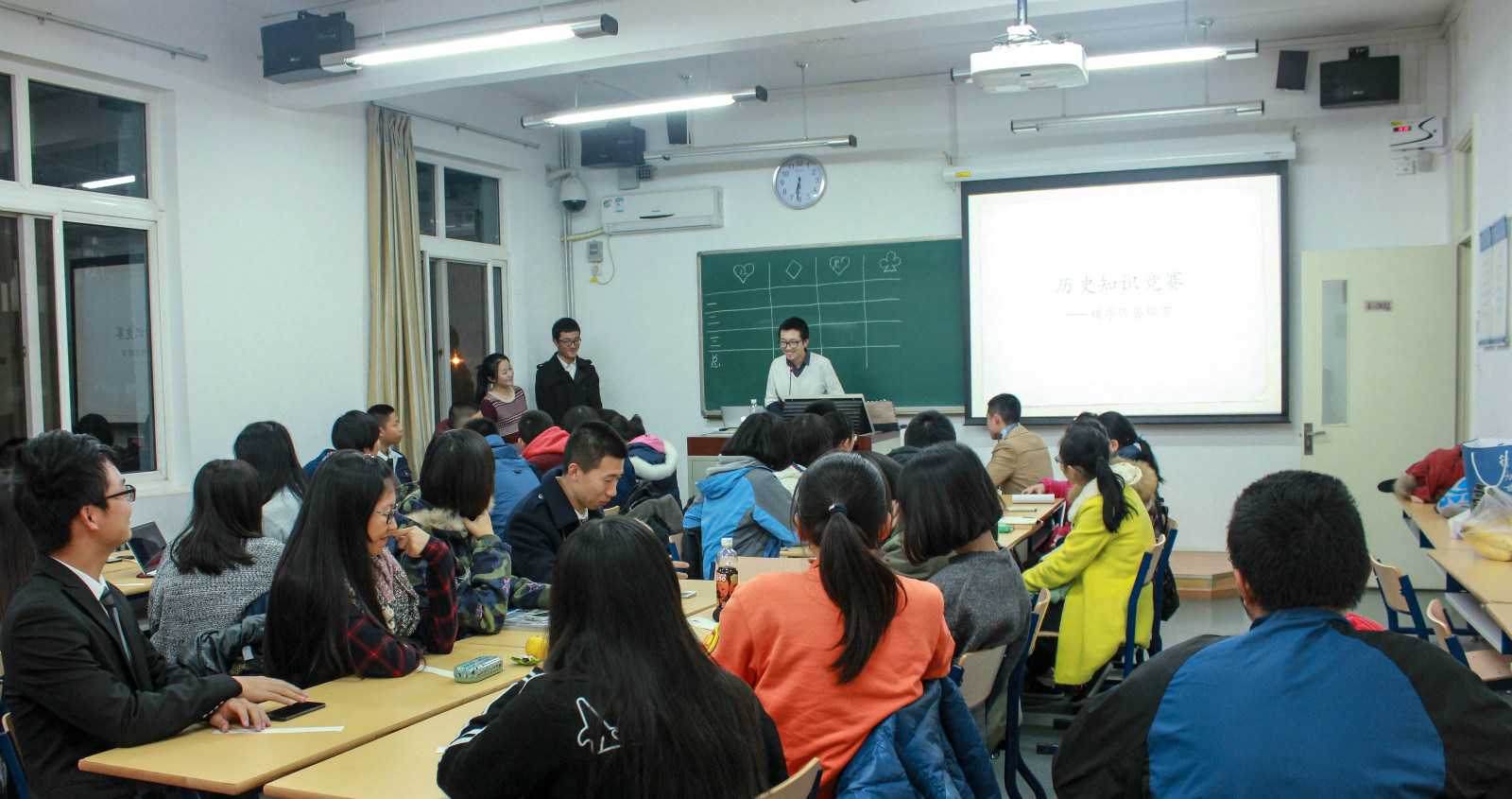 2015年11月21日,心理学院2015级本科3班于教四302举办了“铭记历史,放眼当下” ——纪念反法西斯战争胜利70周年主题团日活动。心理学院2015级本科3班和部分中国人民公安大学同学参与了本次活动,团支书方圆主持。 首先,经随机抽签分为四组进行了历史知识竞赛环节,各队在顺序问答、四队抢答、咸鱼翻身三个环节中积极参与、踊跃抢答,展现了个人历史知识储备,黑桃组以1500分夺得竞赛冠军。 接着,中国人民公安大学的同学们以幽默风趣、真诚动人的语言向同学们展示了自己精彩充实的大学生活,并邀请师大同学到中国人民公安大学做客。 最后,两校同学代表互赠校刊增进了解,活动在欢快轻松的气氛中结束。 本次活动帮助同学们回顾了反法西斯战争历史知识、增强了民族自信心,增进了金牌影院 与中国公安大学两校同学了解,取得圆满成功。