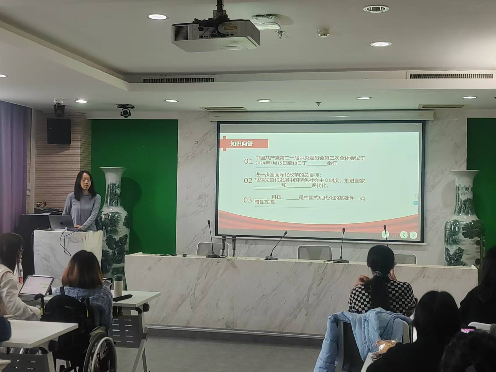 会议内容讲解结束后,团支部组织了与二十届三中全会精神有关的问答环节。在这一环节中,团员们积极参与问答,加深了对知识的记忆与理解。