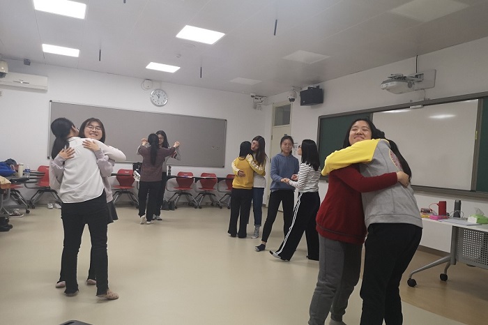 2019年11月23日,由学部生活指导室主办,主题为“压力管理舞动工作坊”团体辅导在教四405成功举办。带领人为德国注册舞动治疗师(BTD)、高校心理负责中心负责人顾丽老师。活动中与压力共舞,体验更多能帮助我们与压力更好相处的方法。 活动开始,大家首先围坐成一圈,互相交流自己对舞动和压力的理解,气氛逐渐活络起来。 随后大家站起来,随着音乐,感觉自己身体的各个部位(手),与身边的人用手“打招呼”。然后陆续活动自己的手肘、肩膀,与不同的人“打招呼”。 接下来感觉自己身体的其他部分,拉伸自己的身体,随着音乐给自己安排一个舒服的动作,每个人用动作介绍自己。随着音乐节奏的加快,大家重复之前的动作,体会不一样的感觉。 在活动后,大家带着微喘的呼吸,在场地中随意地走动,感受这个空间,让大拇指带着自己去动,互相打招呼。随着音乐节奏的加快,大家又用全身去自由的活动,甩动手臂等等。大家热络起来,十分开心。随后,大家互相感受彼此的后背,自由的去动。 然后,大家在场地中找到自己舒适的地方,想象自己是一棵树,各个部位给予自己力量,去伸展自己,自由地探索这个空间。 接下来,大家用纸和彩笔把自己身体的感觉画出来。简短的休息过后,大家围坐成一圈互相分享自己的画,并分享自己的感受。 分享过后,大家用声音和简单的动作配合起来,互相展示。 在音乐下,大家又自由地走到地面上不同的画前面,去体会它地颜色、线条等等,试着用自己的声音和动作去感受它。 在音乐下,大家再次感受压力,感受自己的身体状态并再次画出自己的感受,大家自由地交流分享。随后大家彼此轮换配对,一位同学舞动自己的画,另一位同学去体验、感受这幅画,然后交流彼此的感受。 然后,聆听的同学根据自己的感受在音乐下,传递舞蹈给分享的同学,两人互相配合舞动,表达关心与鼓励。上午的活动在支持、温馨的氛围中结束。 下午,同学们又再次相聚。大家先是躺在地上,放松自己的身体。 身体放松完成后,大家随着音乐再次自由舞动,感受自我,享受舞动的过程。并用纸笔记录这个过程中自己的感觉,并再次随着音乐感受自己紧张的身体部位。用不同的主题反复几次后大家围坐一圈互相分享。 分享过后,老师把同学们分成两组,根据之前的讨论发现自己身体上的紧张,让大家与这种身体上的压力通过动作去相处与解决。 最后,大家在音乐中,自由的舞动,结束后,用“我xxx压力”的句式与类似的动作一起舞动,并分享今天的体验感受。一天的工作坊到这里画下了圆满的句号。 在活动后的反馈中,同学们都表示有很多的收获,许多同学都反馈到通过活动对自己有了更多的了解,也学习到了应对压力的新的方式,在日后的生活中要更多的关注自己的身体和感受。同学们都对本次活动非常的满期,期待有更多类似的活动。本次活动圆满完成,金牌影院 生活指导室也会继续从同学们的需求出发,举办更多高质量活动,切实服务到同学们的生活。 金牌影院 生活指导室 吕煦彤、郑兆奇供稿 吕煦彤供图 |