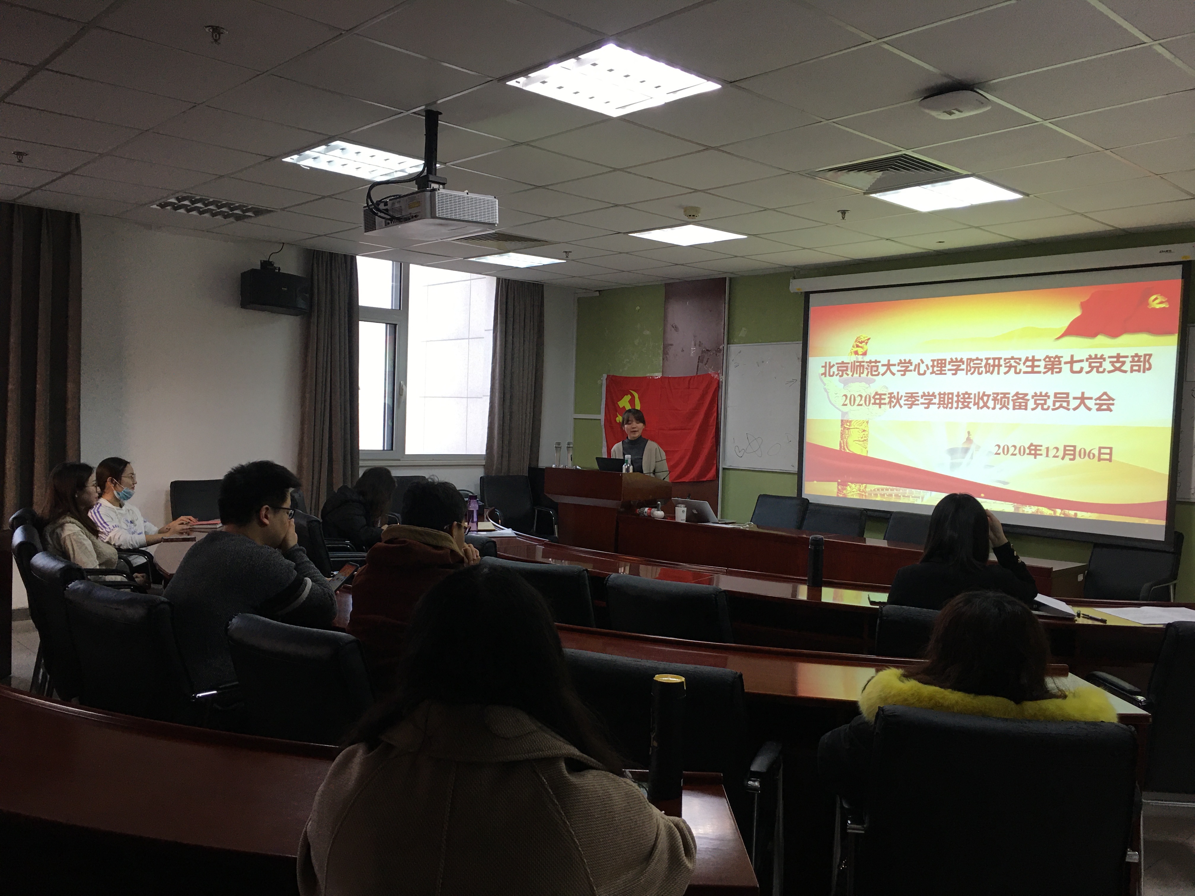 12月6日下午4点,研究生第七党支部2020-2021学年秋季学期党员发展大会在后主楼1420召开。会议由组织委员董丹主持,针对发展对象尼格拉·阿合买提江同志的入党申请情况及相关情况进行了讨论和表决。 全体到场同志合唱《国际歌》后,董丹同志对本次发展大会的流程进行介绍。 之后,尼格拉同志宣读了入党志愿书,两位入党介绍人介绍尼格拉同志有关情况。 其次,到场的正式党员对能否接收尼格拉同志为中共预备党员采用无记名投票方式进行表决。 最后,尼格拉同志成为中共预备党员的申请被通过。她表示今后在学习工作和生活中要严格要求自我,争做合格党员。