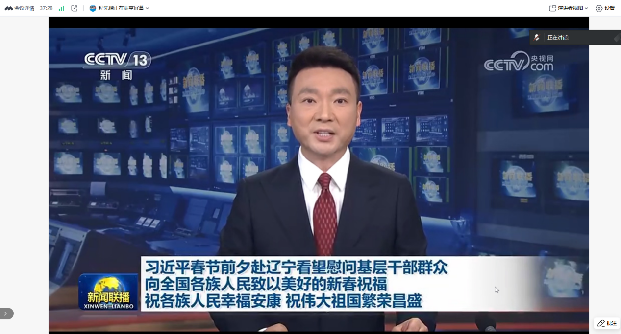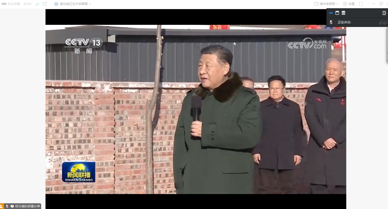 正值乙巳年新年前夕,习近平总书记赴辽宁看望慰问基层干部群众,并向全国各族人民致以美好的新春祝福。会议最后,程先楷同志带大家观看了《新闻联播》的有关报道。