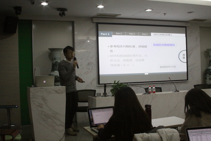 2016年12月16日,“心动力”学术沙龙第二期在后主楼1318学术报告厅顺利举办。本次沙龙邀请到了北师大心理学院临床与咨询研究所2016级博士研究生邓衍鹤同学以及北师大心理学院2015级博士研究生杨莹同学,他们与我们分享了第一次发表英文文章的经历。 讲座开始,邓同学便用他丰富的写作经验告诉我们,对于写英文文章这件事情来说,完成比完美更加重要,切忌拖沓。他从备战、创作、投稿等几个方面来向我们详细说明了从准备阶段至发稿成功经过了怎样的心路历程。在讲座中,他着重讲述了如何以审稿人的角度来不断地修改自己的文章。同时,他指出选择期刊投稿时,也应选择与自己研究内容相契合的期刊。他最后表达了“科研只是手段,生活才是目的”的感悟,告诉我们所做的事情最终的目的都是想让生活更加美好。 接下来,杨同学又从自己的亲身体会出发,补充了一些关于写稿及发稿的注意事项。在对待审稿人的意见方面,她提倡用我们要把审稿人看作是“合作者”和“甲方”,以平常心看待审稿人的意见,因为他们的目的都是想让文章变成“a better paper”。她也向我们分享了她等待投稿回复时的焦虑和紧张心情,并指导我们如何建立积极的心态去面对改稿。最后,她鼓励我们,“每篇文章最后都能找到一个属于它的家”。 分享过后,同学们结合自身情况,向两位主讲提出了有关撰写英文文章的问题,他们都耐心进行了解答。沙龙结束后,大家合影留念。