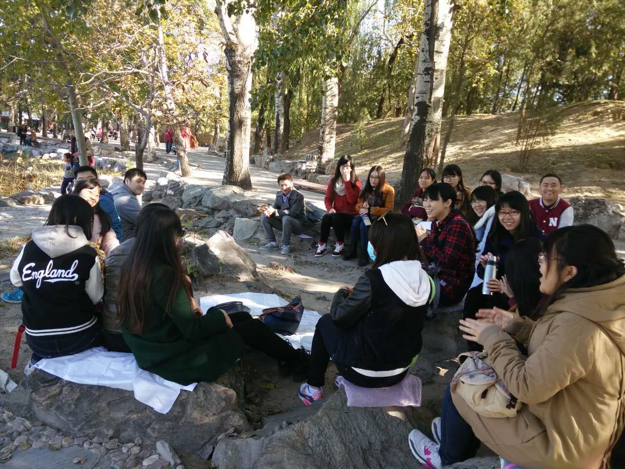 2015年10月31日上午,心理学院15级专硕第一党支部赴圆明园开展第一次党建活动,共27名党员参加了此次活动。 圆明园原本是清朝的皇家园林,有约达600座的园林建筑,为皇家园林之冠。从现在的全景复原图中,可以看到园林之大、园林之精致、园林之奢华,放在科技发达的今天,仍然是一座需耗费许多人力、物力和财力的建筑群。而随着1900年的英法联军入侵北京,对圆明园进行财物珍宝的抢夺和烧毁,只留下了今天所能看到的一处处被摧毁倾倒的旧石堆。党员们走在圆明园中,参观了十二生肖展和西洋楼遗址,深深地感受到历史带来的启迪与思考。 参观结束后,支部组织开展破冰活动。以游戏“逛三园”为契机进行自我介绍。尽管游戏刚开始节奏难以统一,但经过磨合与学习,拉近了党员们的距离,提高了党员们的默契水平,也增强了支部团结。 随后,党员们利用废弃A4纸沿湖边分组进行了“风火轮”素质拓展活动。同学们在讨论游戏策略、尝试和相互鼓励过程中增进了交流与交流。 最后,党员们自觉收拾整理活动过程产生的垃圾,保证了圆明园的卫生与洁净。 活动结束后,支部组织同学撰写个人感想,并借助群邮件开展相互学习。此次活动实现了党员的熟悉认识、建立了党员间友好关系,为未来支部建设奠定了良好基础。