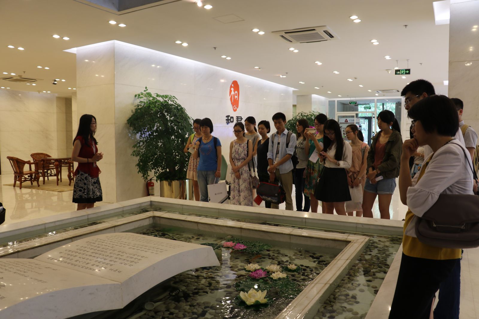 2015年5月27日下午,我院分党委副书记王瑞敏老师、分团委书记史佳鑫老师带领心理学院18名学生参观了北京和君咨询公司,与和君公司人力资源总监程立君女士、业务合伙人吴亮(北师大心理学院校友)、业务合伙人王冬梅、业务合伙人廖坪岗(北师大教育管理学院校友)对心理学在管理咨询领域的应用做了深入的交流。 首先,同学们在和君咨询管理公司石晓媛同事的带领下,参观了和君咨询管理公司,并深入了解了和君的金牌影院及远大愿景。 然后,程总为师生介绍了和君公司项目及人才需求情况。 最后,吴亮学长分享了将心理学应用于工作和生活的个人感想,他认为心理学专业学生不仅要对微观个体有所洞察,还要了解宏观社会,找到社会需要的领域。 此次参访是心理学院“走进工作世界”系列活动之一,旨在为在校生搭建从学业生涯到职业生涯之间的发展桥梁,帮助学生了解心理学在工作世界中有哪些应用,以便更好地规划自己的生涯发展。