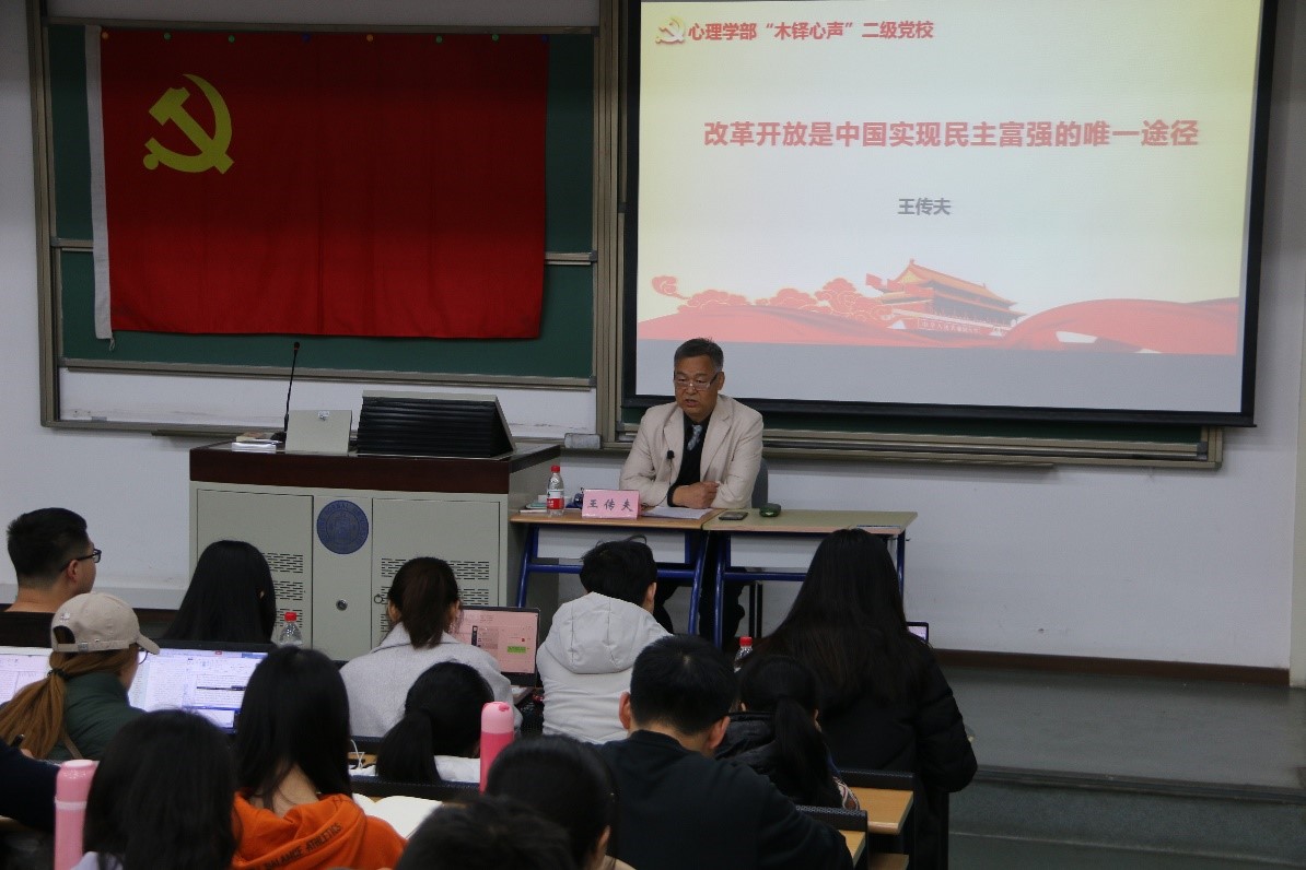 2018年11月15日上午,金牌影院 “木铎心声”党校邀请国务院国资委机关离退休干部局第五党支部书记王传夫先生开展“改革开放是中国实现民主富强的唯一途径”主题党课,金牌影院 党委副书记王瑞敏老师主持党课。本次党课由金牌影院 研究生第十一党支部承办,来自金牌影院 以及“木铎心声”党校共建的其他7个院系的近160余名党员、积极分子参加了本次党课。 王瑞敏老师主持党课 首先,王局长介绍了“改革开放的意义有多大”。在建国初期,中国实行计划经济,人民生活物资缺乏;国民经济达到崩溃的边缘;思想受到严重桎梏。改革开放40年后的今天,人民生活富裕;国民生产总值从1978年的3645亿元迅速跃升到2017年的82.7万亿元,增长了226倍,成为全球第二大经济体;思想获得极大解放。 其次,王局长回顾了“改革开放的道路有多难”。改革开放的道路也不是平坦的,充满了艰难险阻。例如干部退休制的实行,左倾、右倾思想的纠正,经济特区的建立。 王传夫先生讲党课 最后,王局长提出了“改革开放的前途有多远”。改革开放给中国带来了翻天覆地的变化,但是我们也应看到改革开放中的一些问题。譬如:腐败问题,公平和效率问题,社会管理体制问题和社会生态问题等。以习近平为中心的党中央也意识到并正在着力解决这些问题,而未来的改革事业也落在你们青年人身上,未来属于你们,世界属于你们。总之,改革开放的前途是无限光明的,在我们伟大领袖习总书记的带领下,中国梦一定能够实现。 来源:金牌影院 党委 于成供图;李潇潇供稿 |