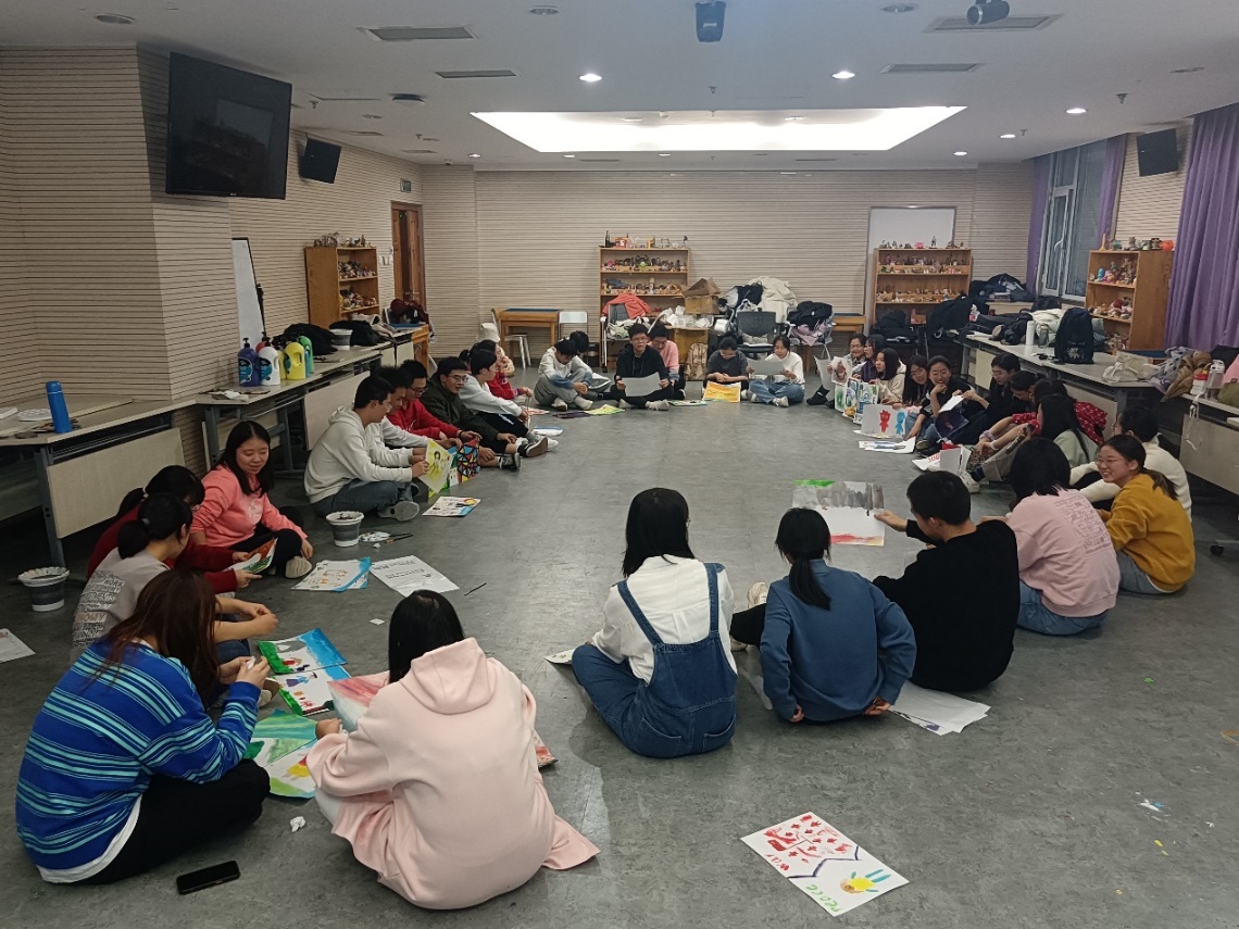 见面会后,陈师韬老师邀请金牌影院 2021级临床与咨询方向专业硕士丁美杉作为团体主要带领者为2022级师范生提供了一场题为“以梦为马,不负韶华”的表达性艺术团体辅导。张瑶、殷忆楠、单旭鑫三位同学作为助手,和陈师韬老师一起辅助了该团体辅导。团体辅导以叙述不同的“人生故事”以及思考“想要成为什么样的人”为主题,通过小组互动、绘画创作、冥想体验、感受探索等方式,让同学们将自己内心的体验通过绘画的方式表达出来。
