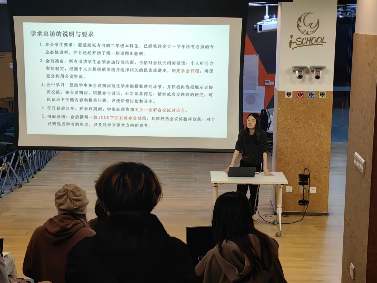 之后,由周丽琴老师介绍了学术出访的流程及要求,需要进行的会前准备以及会中会后的一些活动,并向大家明确了参会的主要目的,且需要制定一份适合自己的会议日程。