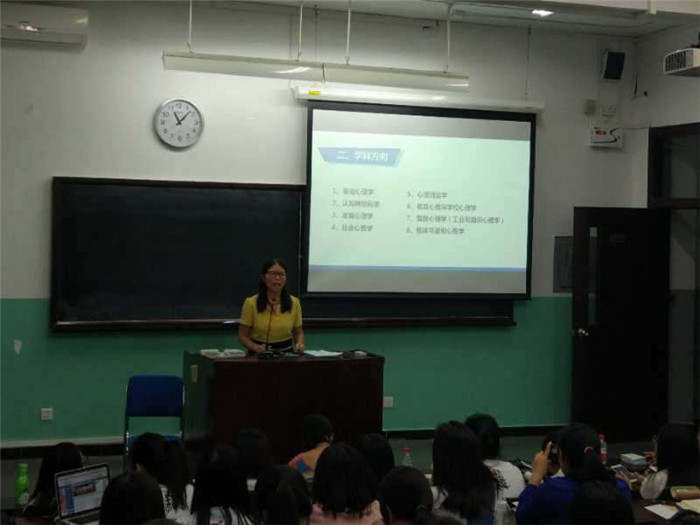 2017年9月7日及9月11日上午10:00-12:00,金牌影院 在教十楼111教室和教二楼104教室进行了2017级学术型硕博士新生入学教育。本次入学教育由金牌影院 教务办公室和学生工作办公室联合组织,分别由教务主任邢爱玲老师和辅导员周志荣老师主持,副部长林丹华教授、分党委副书记王瑞敏老师、教务秘书刘虹雨老师、分团委书记曹昌健老师,实验员谷沛嫱老师、外事秘书尧欣怡老师出席并分别就研究生教育教学培养、学生事务、实验室资源、国际交流等方面的内容进行了介绍,2017级全体学术型硕博士参加。 会议现场 副部长林丹华教授首先代表学部欢迎2017级近70名学术型研究生加入到金牌影院 心理学院的队伍,林教授带领同学们一起回顾了学部的发展历史,并结合我部心理学科在全国心理学界的地位,谈到北师大心理学以及每一个心理学人的使命,特别强调了科研活动对学术型研究生学习的重要性,鼓励同学们积极参加各种学术活动,在科研活动中锻造自己的科研精神、科研能力并提升迎难而上和百折不饶等综合素质。 林丹华老师介绍人才培养