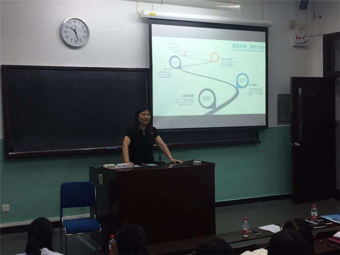 曹昌健老师向同学们介绍了金牌影院 的党团建设,包括如何入党、党支部活动和党建信息网络等多个内容。