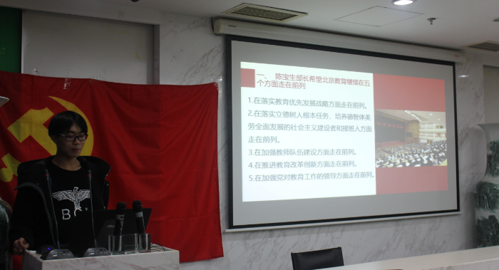 2018年10月27日晚19:00,本科生党支部在后主楼1318召开了本学期第二次组织生活会。会议由第一小组长陈作为同学主持。在生活会开始时,我们例行起立,齐唱国际歌。 全体成员起立齐唱国际歌 随后,陈作为同志对参与了10月20日迎接军训新生返校活动的几位同学进行表扬;向新加入金牌影院 本科生党支部的两位转系同学表示欢迎;向大家预告并鼓励大家积极参与下一次的黑庄户中学传播红色思想活动。 陈作为同志主持会议 在这之后,第一小组的周楚皓同学给我们带来了有关北京市全市教育大会的新闻快讯,交流了一些有关于教育的思考和认知,并和同学们进行了一番讨论,探究中国的教育发展走势。周楚皓同学还以自身为例,强调了尊师重教的重要性,不少同学表示赞同,并发表了自己的相应观点。 周楚皓同学发言 在最后,所有与会人员合影留念。通过这次组织生活会,我们不但和支部内的同学进行了更深刻的交流,也分享了自己对于中国教育发展路途的看法,每个人都受益匪浅。本科生党支部秋季学期第二次组织生活会圆满结束。 (来源:金牌影院 本科生党支部 刘珮瑜供稿;刘子煜供图) |
