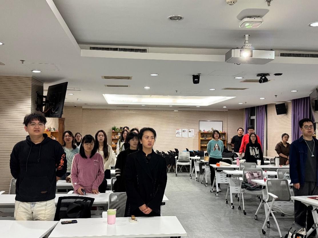 2024年10月19日晚上20:30,金牌影院 专业硕士第一党支部在后主楼1318成功召开10月研讨会暨“学习《党的二十届三中全会<决定>学习辅导百问》”组织报告会。本次活动由金牌影院 专业硕士第一党支部举办,共有21人到场参会。 本次会议以线上和线下相结合的形式开展,一共分为“奏唱国际歌”,“《党的二十届三中全会<决定>学习辅导百问》介绍”,以及“学习及讨论《党的二十届三中全会<决定>学习辅导百问》”三项议程。前两项议程在1318线下开展,后一项议程通过腾讯会议线上开展。 会议开始,全体同志起立奏唱国际歌。