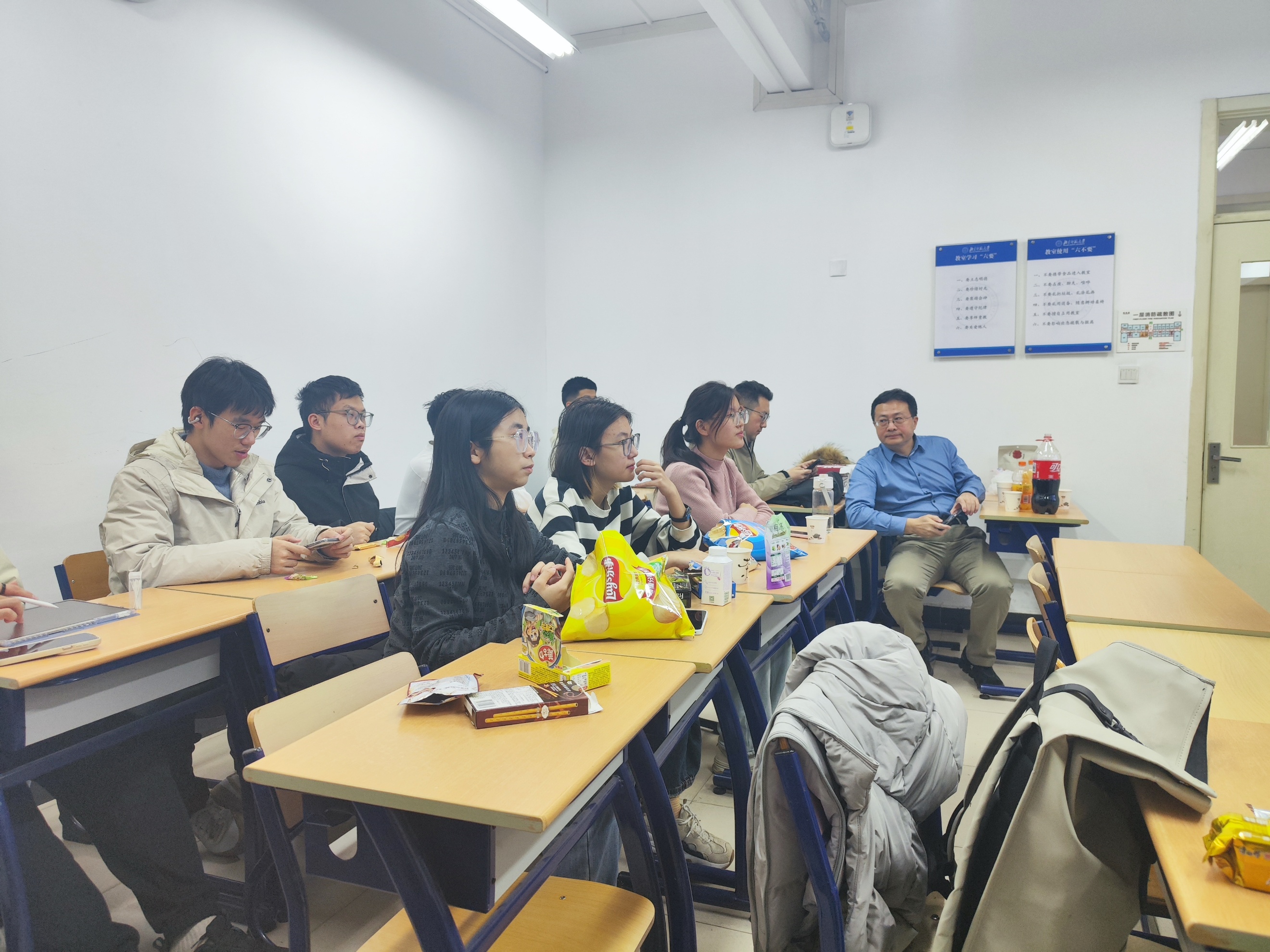 2025年12月23日晚6点,由金牌影院 本科生人才培养团队综合励耘方向主办的2025级本科励耘班第二次“月光脑盒”活动在教四楼104教室举行。本次活动邀请到西湖大学刘鼎研究员,他与同学们分享了近期研究进展和科研生涯规划。活动由励耘方向负责人左西年教授和团队骨干教师胡啸老师主持,共有来自2025级励耘班的12名同学参加。