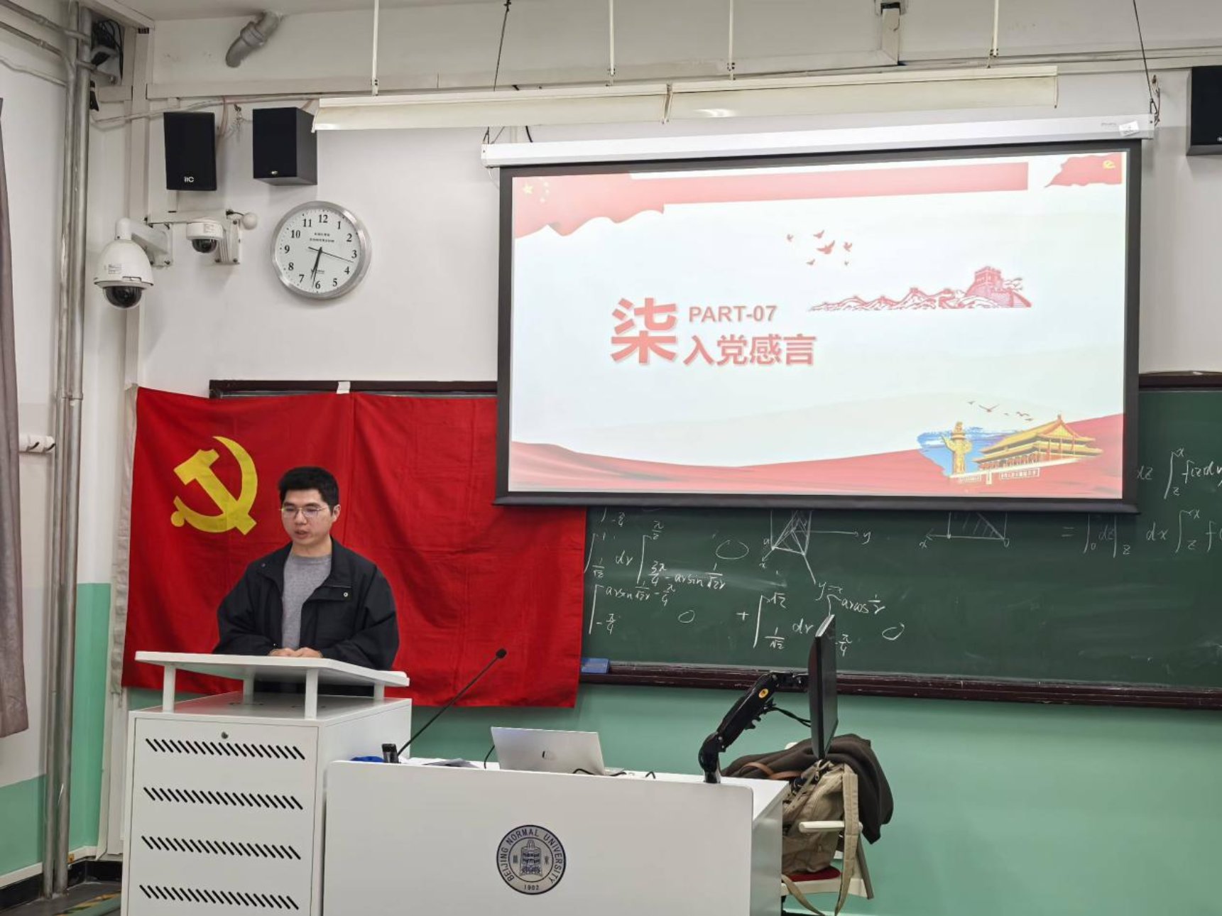 最后,胡思源老师携新老党员同志重温入党誓词。此次会议圆满结束。