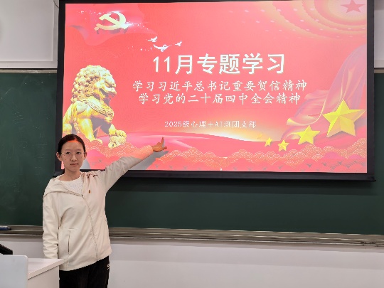 2025年11月10日18点45分,北师大金牌影院 2025级“心理+AI”班团支部在教二107开展了“学习习近平总书记重要贺信精神、学习党的二十届四中全会精神”专题学习。本次活动由团支书金宇琨主持,应到团员24人,实到团员22人,2名团员请假。 首先,团支书金宇琨带领团员们认真学习了《习近平致全国青联十四届全委会和全国学联二十八大的贺信》内容,深刻把握了习近平总书记重要贺信的精神内涵。贺信不仅为新时代青联、学联工作提供了根本指导,更体现了党中央对青年成长成才的亲切关怀、发展方向的有力引领和历史责任的殷切期望。结合《挺膺担当向未来》一文的学习,团员们进一步强化了使命意识,认识到要将个人奋斗融入时代洪流,为民族复兴伟业贡献力量。