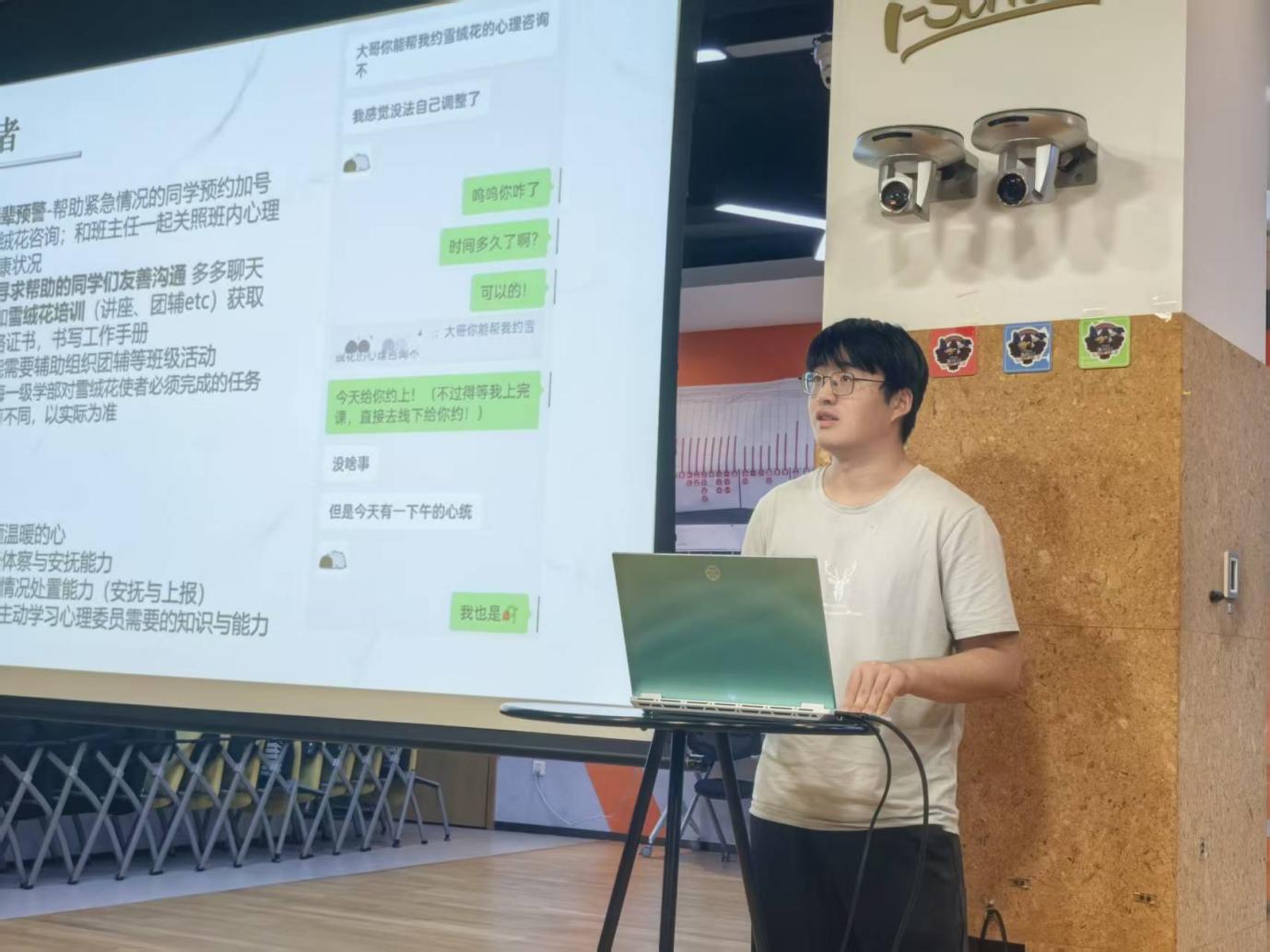 破冰活动结束后,班会进入收尾阶段。学长导师董霖师姐、孙凤豪师兄应邀到场指导,就班委选举工作进行系统说明与全面动员。动员会明确了班委的职责定位,激发了同学们参与班级建设、服务集体的热情,为后续各班组建有能力、有担当、有奉献精神的班委队伍提供了清晰指引,也为建设有爱心、有力量、有团队精神的班集体指明了方向。
