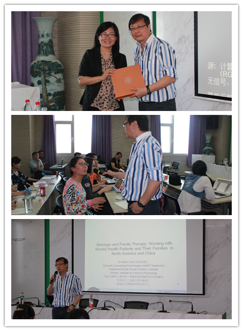 5月19日下午1点,“Marriage and Family Therapy (MFT) as an distinguished discipline: working with mental health patients both in North America and China.”讲座在后主楼1318成功举办。临床心理学家、美国婚姻家庭治疗协会(AAMFT)认证督导师Albert Chan先生担任主讲嘉宾,心理学院蔺秀云副教授主持讲座。 此次讲座是由金牌影院 发展心理研究所婚姻家庭研究与咨询中心主办,MAP教育中心协办,邀请了同时具有中西文化背景的陈先生主讲,介绍了国外先进的家庭治疗理念,及在中国的应用,有效地促进了师生对心理咨询文化差异的深层理解,加深了对心理学本土化的思考。 原本准备了英文讲座的陈教授,为了照顾同学们,临时改成了中文,让大家深受感动。陈教授不仅跟同学分享了自己的职业生涯,也跟同学们对比了中西文化的差异,更用生动幽默的案例加以阐述,让大家感同身受。 整场讲座持续约3个小时,中间无一人离席,在最后的提问环节中,师生们还饶有兴致地与Albert先生讨论了诸多问题,Albert先生的耐心解答让大家深受启发。 图一 临床心理学家、美国婚姻家庭治疗协会(AAMFT)认证督导师Albert Chan先生为北师大心理学院学生做讲座分享 改变世界,你准备好了吗?BNU-MAP |