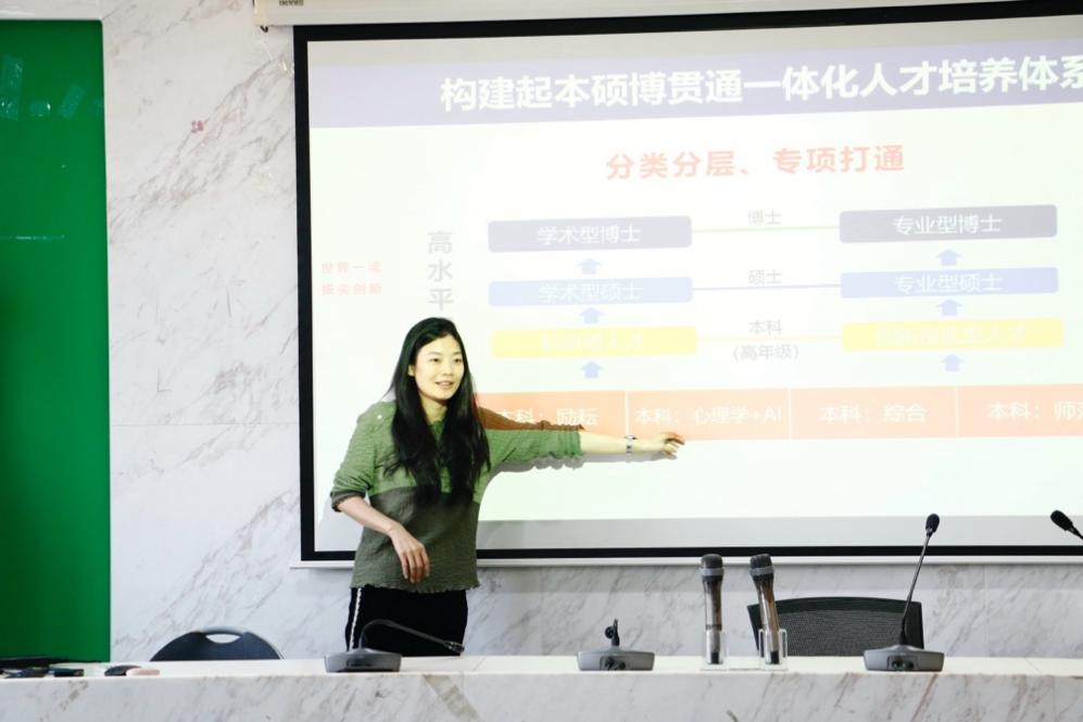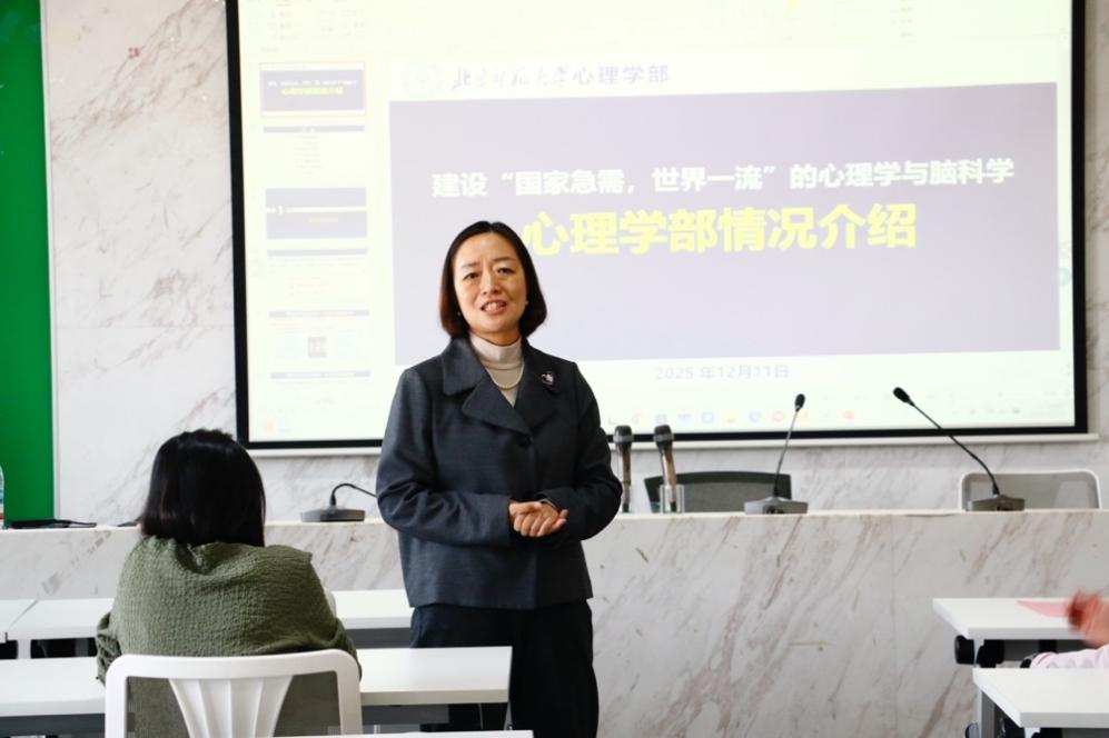 骆方副部长讲话 随后,周丽琴老师围绕金牌影院 金牌影院 的人才培养方案进行了系统解读,详细介绍了学部在本科与研究生阶段的培养目标、课程设置及发展特色,并结合心理学学科发展趋势,分享了北师大在拔尖创新人才培养方面的实践经验。同时,周老师也向天津师范大学的同学们发出诚挚邀请,欢迎优秀学子未来报考金牌影院 金牌影院 硕士及博士研究生,继续深造与发展。