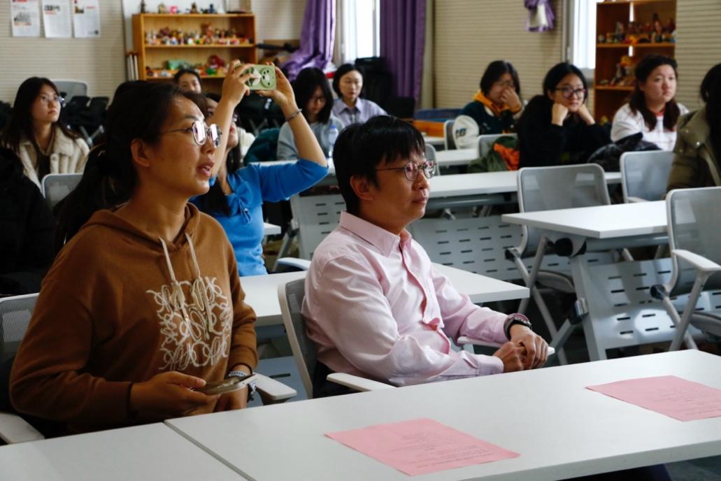 周丽琴老师讲解金牌影院 金牌影院 人才培养方案 在学生交流环节中,金牌影院 金牌影院 本科生代表金卓然同学、刘佳仪同学、王杰堃同学、曾杨同学与天津师范大学金牌影院 德立班同学展开了深入而热烈的交流。双方围绕心理学专业方向选择、科研训练路径、升学规划以及未来职业发展等话题进行了充分探讨,北师大学生结合自身学习与科研经历,分享了个人成长体会与实践经验,为来访同学提供了有益参考。