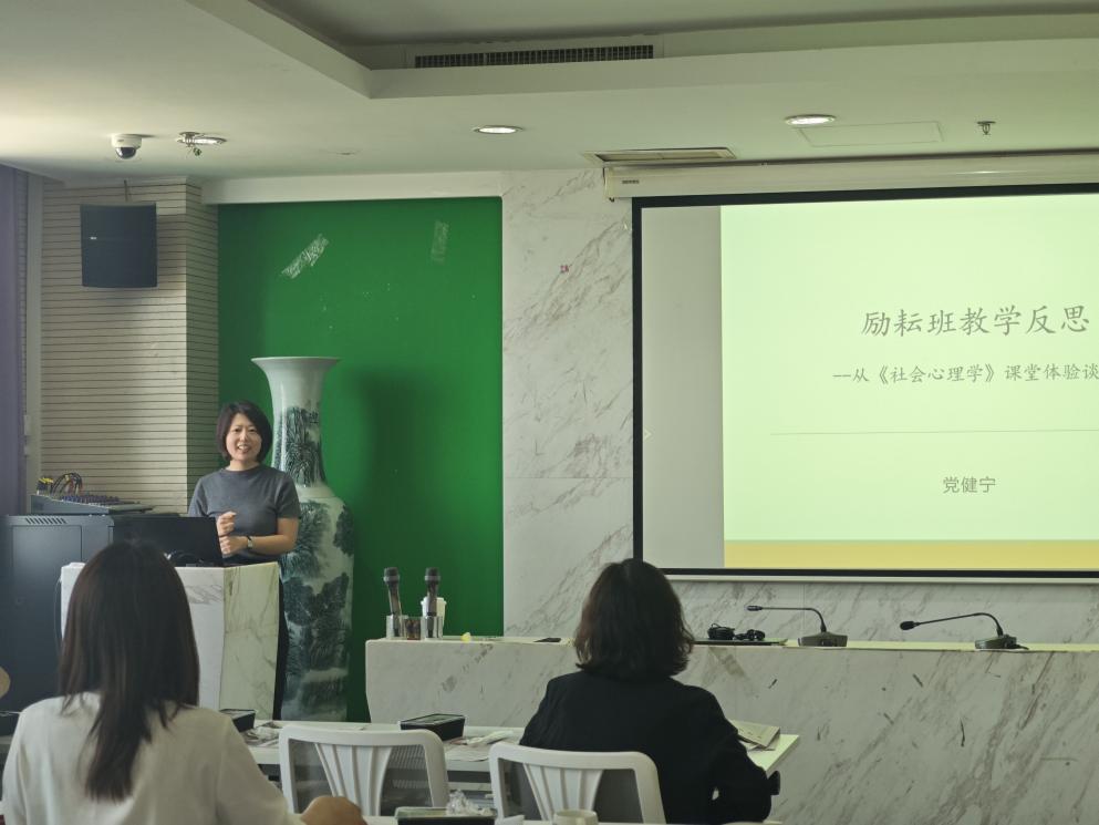 从调研结果中,我们欣喜地看到励耘同学对学部课程的整体满意度均保持较高水平,且随着年级的降低,满意度还有上升的趋势。特别是专业必修课获得了学生们的广泛好评,认为这些课程与他们的期待高度一致,甚至超出了预期。在“选出三门对你个人心理学专业学习最有用的课”这一环节中,不同年级的学生给出了各自独特的答案,评选结果反映了学生们对课程实用性的高度关注。调研还收集了学生们对课程设置的多方面建议与期待。本次调研为学部未来的课程优化提供了宝贵的参考。 励耘团队特别邀请党健宁老师作为嘉宾,就励耘方向本科教学经验进行交流。党老师结合励耘班《社会心理学》的课程教学体验进行全面而深刻的教学反思。她首先分享了其课程的考核方式与平时作业设置,这些设计不仅注重知识的传授,更强调学生的主动参与、主动思考。同时,她也关注到在《社会心理学》课程中,学生普遍缺乏问题意识及课堂互动,这引发了与会教师们的深思,如何在教学过程中更好地培养学生的批判性思维与问题解决能力,成为了大家共同关注的焦点。