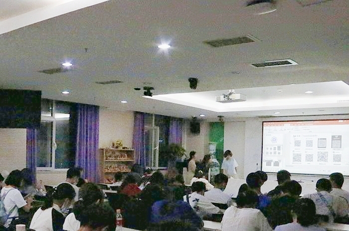 各部门各团体宣讲后,开始集中报名环节,屏幕上重新呈现各团体招新二维码并持续5分钟,供感兴趣的同学选择。