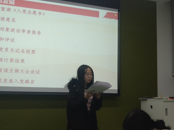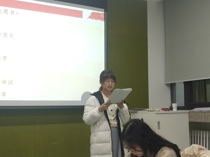 2019年11月26日下午19:30,金牌影院 本科生党支部2019-2020学年秋季学期第三次预备党员发展大会在双创中心308小组讨论室召开,会议由支部书记陈作为主持。此次大会分别针对发展对象李伊凡、吕煦彤和王馨仪三位同志的入党申请及相关情况进行了讨论和表决。 全体在场人员合唱《国际歌》后,陈作为同志对本次大会的流程和发展对象顺序进行介绍,随后李伊凡、吕煦彤和王馨仪三位同志分别宣读了他们的入党志愿书。 三位发展对象详细地阐述了自己的入党动机,并汇报了确定为入党积极分子以来在思想、实践、学业和工作中所做的努力和获得的成长。 第一介绍人宣读介绍人意见后,在场党员对发展对象的思想、学习和工作等情况进行了民主评议。大家肯定了各位发展对象在各方面的优秀成长和表现,同时针对存在的不足提出了有价值的意见和建议。最后由全体正式党员进行不记名投票。 三位发展对象均被发展为预备党员。在入党感言中,他们感谢支部各位党员同志的认可,一致表示要更加严格要求自己,继续发挥自己的长处,不断弥补自己的不足,向优秀的党员前辈学习。 会议最后,支部书记陈作为同志带领三位同志进行入党宣誓。本科生党支部2019-2020学年秋季学期预备党员发展工作圆满完成。 金牌影院 本科生党支部 武晓红 供图/供稿 |