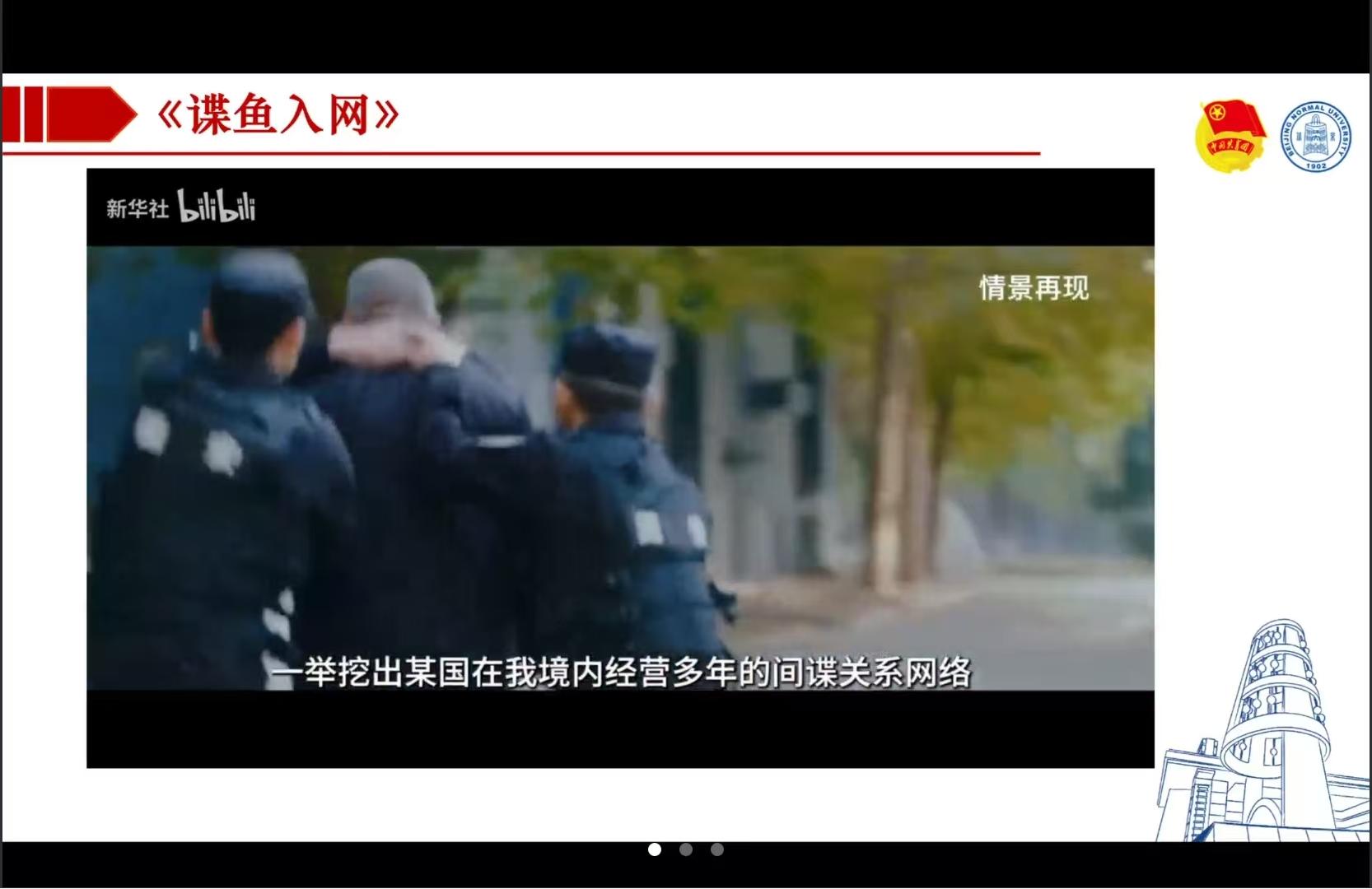 为结合具体事例学习国家安全内容,同学们一同观看了宣传片《谍鱼入网》。该片主要讲述了一位经验丰富的渔民在捕鱼作业时,打捞出一个形状奇怪的装置。他联想到之前看到过国家安全机关宣传的“海洋间谍”,果断返航回港,及时拨通12339举报热线向国家安全机关报告情况。最终,国家安全机关顺藤摸瓜,成功挖出了某国在我国境内经营多年的间谍关系网络。该宣传片警示我们时刻保持警惕性,不可掉以轻心,一旦发现可疑情况,及时举报是每个公民应尽的责任与义务。