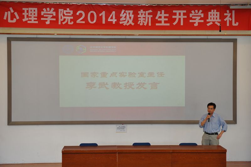 2014年9月15日,在教九502成功举办了心理学院2014级新生开学典礼,200余名2014级本硕博新生参加了大会。心理学院学长董奇校长、心理学院院长刘嘉教授、心理学院分党委书记乔志宏研究员、认知神经科学与学习国家重点实验室主任李武教授及脑科院教师代表、心理学院全体老师等出席了大会。心理学院专职辅导员、2014级本科生班主任史佳鑫老师担任主持人。 校长董奇教授在致辞中,作为本硕博都是在心理学院度过的资深学长,对2014级的新生表达了热烈的欢迎,同时也提出了殷切的期待,希望同学们在求学期间找准自己的定位,为自己规划好学习生活,承担起相应的社会责任,做追求卓越、勇于担当的社会精英。 院长刘嘉教授结合自身经历,向同学们提出了大学生活中必做的“四个一”:挣人生的第一个一万元钱,发表一篇高水平的学术论文,进行一次有意义的志愿活动,做一次深入基层的旅行,为同学们指出了大学阶段的努力方向。 北师大心理学科有两个重要的组成部分,其中之一就是认知神经科学与学习国家重点实验室,为了让同学们对我校心理学科有个完整的了解,特别邀请了国家重点实验室主任李武教授出席大会。李武教授详细介绍了国家重点实验室的工作内容和研究方向,展示了实验室的丰硕科研成果和先进的仪器设备,使同学们对未来的学习和科研满怀憧憬。 为了让同学们更好地认识和学习心理学,学院邀请了三位优秀的老师介绍心理学的三个二级学科。毕彦超教授深入浅出地为大家展示了基础心理学的高端与趣味,陈英和教授饱含真情地介绍了发展与教育心理学的学科魅力,徐建平教授幽默风趣地介绍了应用心理学在社会上的广泛应用。这些介绍使同学们对于心理学专业有了更深刻的认识,也激发起更多的探索欲望。 最后,张萌同学作为2014级硕士研究生新生同时也作为刚刚毕业的本科生老生,分享了自己在心理学院求学期间学习、科研和社会工作的经历感悟,激励同学们用积极的心态和百分之百的努力去迎接学习生活中的各项挑战,不断获得新的成长。