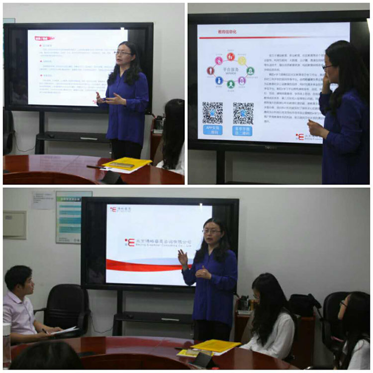 简单的面试结束后,潘经理向心理学院到场的师生从四个方面介绍了公司的情况和主要业务。北京博略睿晟咨询有限公司是一家由北京市朝阳区教育委员会国有资产管理中心全资举办、专注于教育的国有企业集团。核心业务覆盖青少年校外教育、职业教育、社区教育、人力资源服务等领域,目前集团所重点搭建的“终身教育体系”也是广受关注。