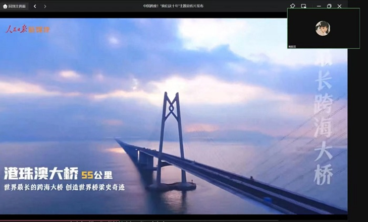 鲁措:看到祖国十年的伟大成就,我深深地感受到了祖国发展的日新月异,以及祖国取得今天巨大成就的背后所付出的努力。正是一代代前辈的不懈努力,我们如今的生活才会这么美好。正是一代代前辈的接力奋斗,才成就了新中国的发展伟业。作为新时代的青少年,我们一定要传承红色基因,追寻红色足迹,牢记习总书记嘱托,珍惜当下,保持清醒头脑,在未来祖国的发展中贡献自己的一份力量,确保红色江山永不变。 最后,同学们分享了自己社会实践和志愿服务的经历。同学们主动承担校园防疫志愿者的工作,利用暑期积极投身于各类社会实践之中,以实际行动迎接党的二十大。