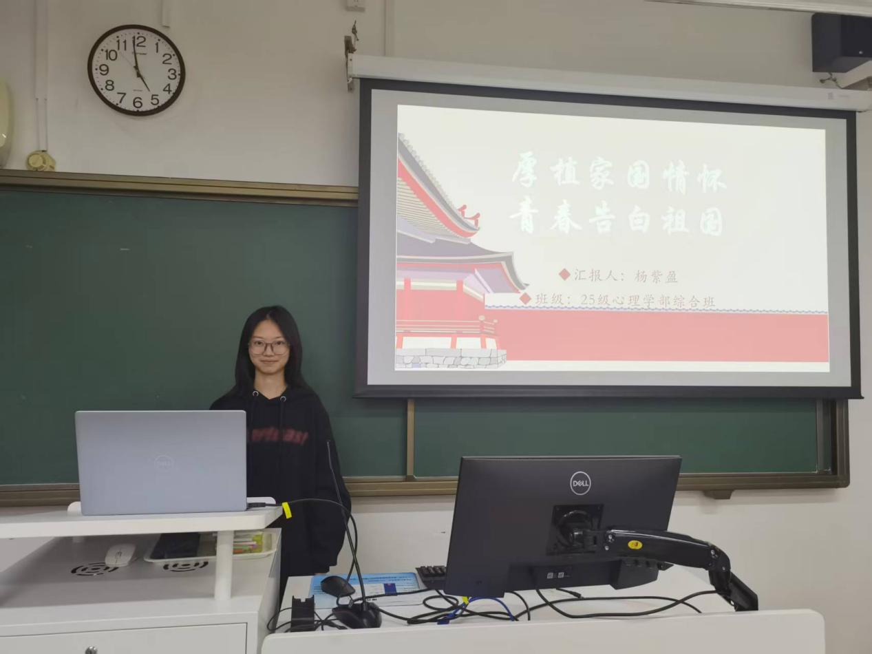 2025年11月7日16点至17点,金牌影院 金牌影院 2025级综合班团支部于教四106教室成功举办了以“厚植家国情怀 青春告白祖国”为主题的团日活动。本次活动由团支书杨紫盈主持,支部全体共11位团员积极参与。