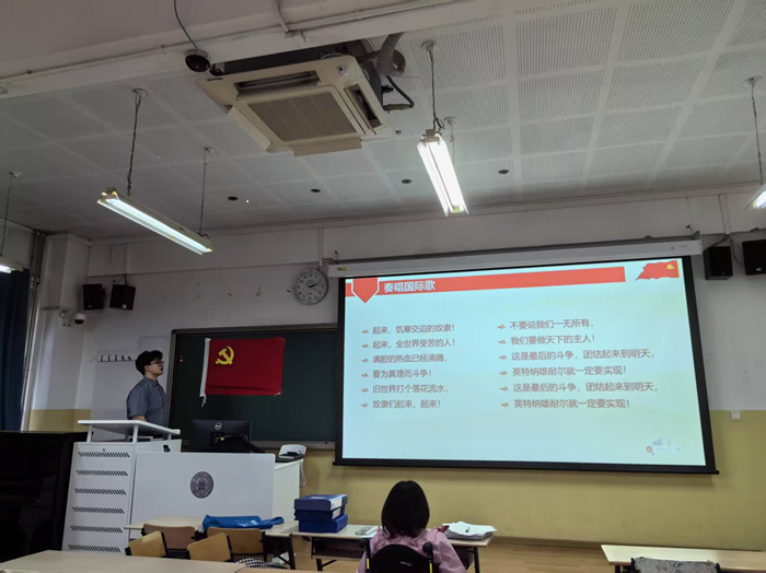 2025年6月14日14时,金牌影院 本科生第二党支部六月党日活动在艺术楼401教室顺利开展。本次活动由党支部书记孙梓耀同志主持,会议以就业、保研、考研的经验分享和思想交流为主题,旨在为同志们提供学习和成长的平台,鼓励大家在学业和职业规划上积极进取,同时加强党性修养,坚定理想信念。 首先,全体起立,奏唱《国际歌》。
