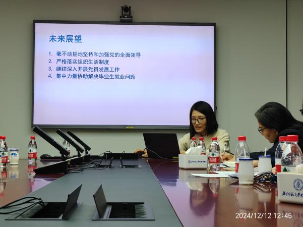 为全面总结各党支部本年度工作开展情况,加强党支部建设经验交流,进一步提升基层党组织的凝聚力与战斗力,推动学部党建工作高质量发展,根据学校《关于组织开展2024年度党支部书记述职评议考核的通知》,2024年12月12日中午,金牌影院 党委召开2024年度师生党支部书记述职会。金牌影院 党委书记乔志宏、党委副书记闫琰、党委纪检委员骆方、校党委组织员李晓娟、学部党委专职组织员崔世莹、齐乐融融出席本次会议并担任评委,全体师生党支部书记参加会议。会议由党委副书记闫琰主持。