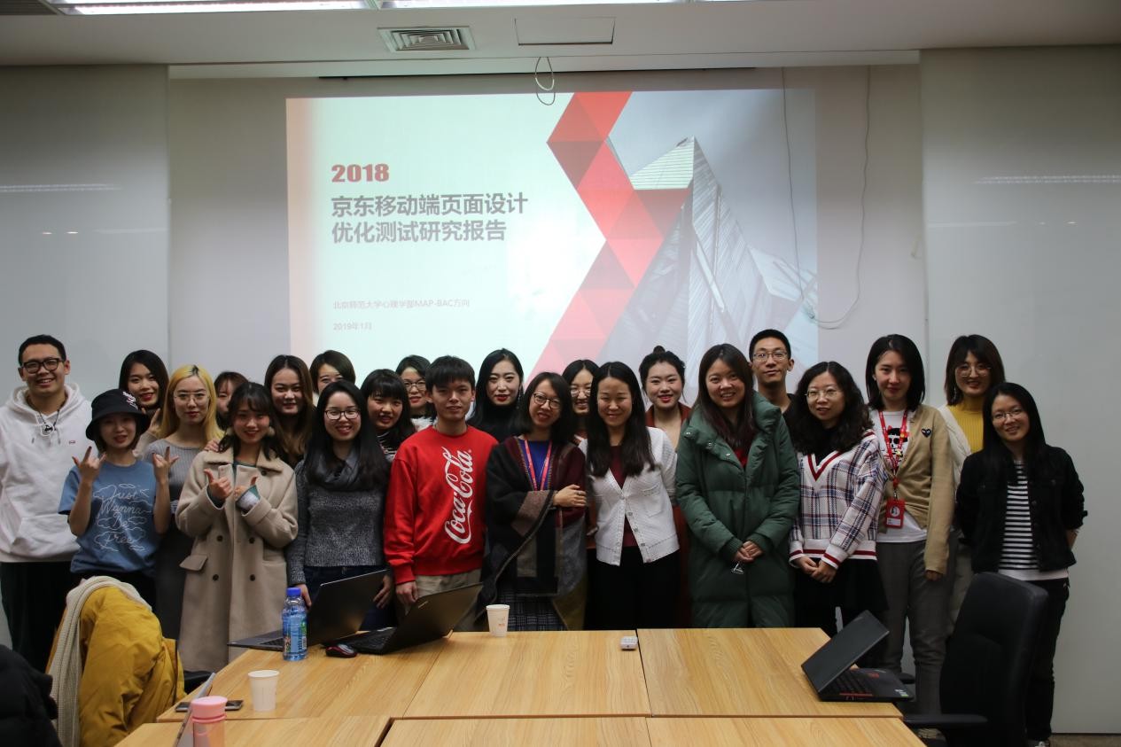 图3 北师大金牌影院 MAP-BAC方向师生与京东通讯事业部专家进行交流 参访结束后进入了项目汇报与交流环节。BAC同学们此前使用眼动研究技术+脑电研究技术对京东手机APP以及其主要竞品进行了分析解读,并将结果向京东通讯事业部工作人员做了汇报。京东通讯事业部工作人员对此项实验研究非常感兴趣,认真听取了同学们的研究结果,并且与同学们就部分实验设计以及数据细节做了深入的讨论。 参访京东结束后,MAP-BAC方向都沉浸在对新事物的了解和深入中,并期待在未来能有更多机会深入了解到行业,了解即将踏入的市场。