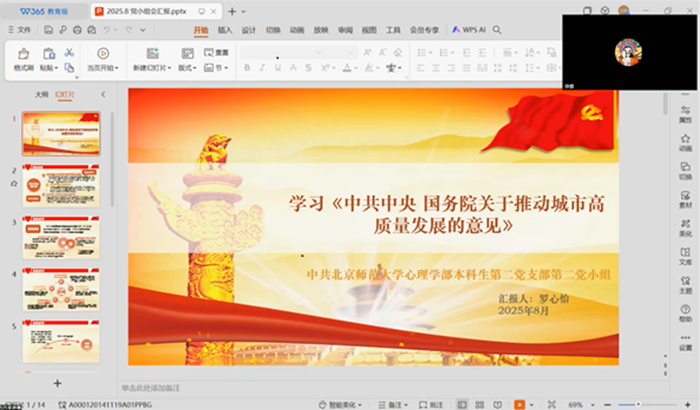 为深化党建学习实效,统筹理论认知与时代关切,金牌影院 本科生第二党支部组织四个党小组于2025年8月分别召开专题党小组会。各小组围绕民生保障、科技发展、航天成就、历史铭记等主题,通过主题分享、集体观影、线上研讨等多元形式,引导党员同志锚定时代坐标,坚定理想信念、践行使命担当。 2025年8月26日20时,第一党小组22名成员通过腾讯会议线上开展活动,开展三场专题分享。万祎林同志以“迎战‘三峰叠加’:2025年8月中国民生保障大考”为主题,深入剖析政府在民生保障中的挑战与应对举措,让同志们深刻认识到民生保障的系统性与重要性。梁语轩同志聚焦8月14日至17日在北京举办的首届世界人形机器人运动会,通过回顾赛事精彩瞬间,阐释活动的深远意义。孟家伊同志围绕暑期热映电影《南京照相馆》展开分享,该片取材南京大屠杀真实历史。影片助力青年一代理解“和平珍贵”与“吾辈自强”的内涵,也在国际放映中展现中国电影影响力,让世界更深入了解中国历史与文化。