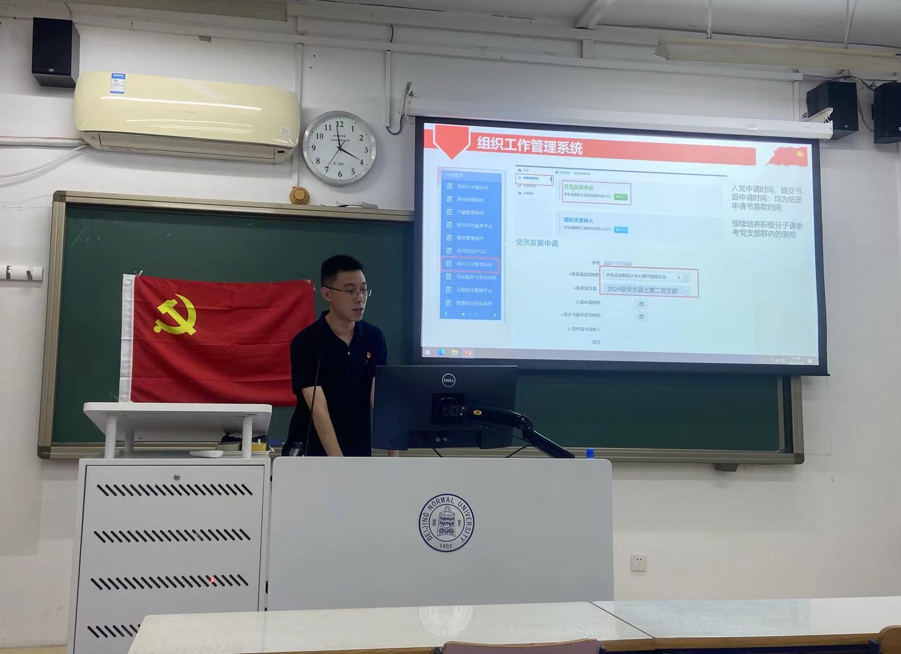 2024年9月28日下午16时,金牌影院 2024级学术硕士第二党支部于教2楼105顺利开展本学期入党积极分子确定大会和本月的主题党日活动。会议由党支部书记程先楷同志主持。支部9位正式党员,9位拟接续培养的积极分子和8位入党申请人均到场参会。