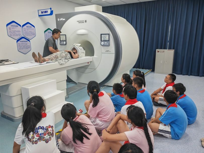 最后,青少年们来到金牌影院 认知神经科学与学习国家重点实验室脑科学展厅,通过体验磁共振模拟机、观看脑结构模型、学听脑科学发展介绍、阅读脑功能发展图文等,了解了大脑的功能及发展规律,对脑科学有了更加形象的认知,感受了国家重点实验室浓厚的科研氛围与前沿的科研内容。