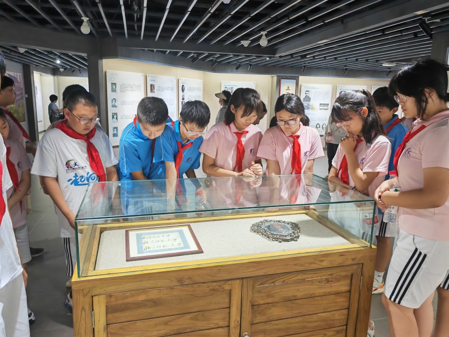 随后,大家来到金牌影院 形象陈列馆,跟随讲解员的脚步,从展示金牌影院 三个校区布局的沙盘出发,依次穿过“校史厅”、“名师厅”、“特色厅”和“启功厅”,回顾北师大办学的历史发展进程,聆听鲁迅、李大钊等人对革命进程推进的重大贡献,领略北师大在自然科学方面的突出成果,了解启功先生的生平故事和字画作品,沉浸式感受北师大的百廿峥嵘岁月和浓厚学术氛围。