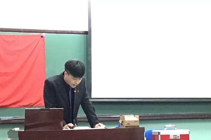 2019年9月23日,金牌影院 第三次团员、学生代表大会在教九502隆重召开。 晚上18:30,大会在金牌影院 学生会副主席李然的主持下开幕。