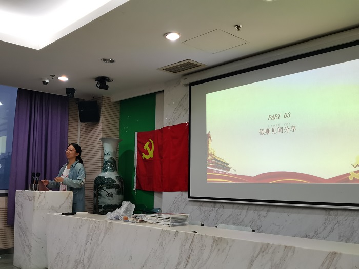 2019年9月21日晚上18:00,金牌影院 本科生党支部于后主楼1318进行了秋季学期第一次组织生活会。本次组织生活会由党支部书记陈作为同志主持。 同学们起立齐唱国际歌后,陈作为同志向大家简略介绍了本学期支部的工作安排,并公布了经典阅读活动的奖励名单。 之后,张嘉恬小组同学对近期时事进行交流和分享。 李伊凡同学向我们介绍了共和国勋章获得者——于敏先生。他隐姓埋名工作二十余载,不慕名利,为了国家的氢弹研制事业鞠躬尽瘁,充分践行了一名党员的优良品质,是我们学习的好榜样。 随后,张嘉恬同学分享了自己暑期前往四川汶川支教的经历。其他同学也分享了自己暑假经历和体验。 通过这次的组织生活会,同学们对于新学期支部的工作计划有了大致的了解,也回顾了刚刚过去的暑假,从中收获到很多,本次组织生活会圆满结束。 (金牌影院 本科生党支部赵恒供图供稿) |