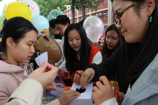 2019年4月28日上午,“525大学生心理健康节”开幕式在邱季端南举行,在舞台处进行即兴戏剧表演互动的“椰丝团”为大家带来了一系列精彩纷呈的演绎,舞台上时不时传来阵阵欢声笑语,气氛一度被推向高处。 当天上午9:00,场地布置好后,椰丝团的团员们便开始进行暖场活动——“创意空间”。“我是一块豆腐”,“那我是夹豆腐的筷子”,“我是煮豆腐的火锅”……同学们创造力丰富,演绎出了一幅又一幅或奇异或有趣的画面,包括“一锅火锅”、“一个人的情侣”等等,引得路人纷纷驻足观看,露出了好奇的笑容,经过引导,也有不少路人参与到了这个暖场环节中。 开幕仪式结束后,“三头专家”就在舞台上闪亮登场了。“这是一位来自外星的专家,它有三个头”,每个头每次只能说一个字的奇妙设置极其考验台上三位同学的默契,不论是场上时不时爆出的无厘头答案,还是主持人机智救场串联起来的解释,都引发了场上场下一阵阵欢快的笑声。 趁着来往的人越来越多,椰丝团的团员们抓准时机,开始了简单易参与的游戏环节——“biblibablibong”,大家围成一个圈,互相念着咒语,反应慢的、反应错的都要被换到中间去,成为新的“咒语发射人”,由于规则简单易懂,且气氛热烈,很快就有很多人加入了这个游戏,围的圈子也越来越大,大家兴致越来越高,不断变换着花样想让别人出错,场内充满了快活的气息。 游戏环节的第二个游戏是“woosh bang xiu”,随着咒语被念动,在圈内仿佛有一个能量团被传动,随着游戏进程推进,大家的动作也越来越快,仿佛吸收了来自能量团的能量,而做错反应的人要和圈子上的每个人击掌,并大声说出自己的名字,圈子上的人则一边欢呼一边交换位置,一度将气氛推向高潮。 最后进行的是“拍拍走”和“观众纸条”,这是即兴戏剧的两种表演方式,很好地体现了“即兴”的精髓,并且将台上的演员和台下的观众紧密地联系在了一起,不论是椰丝团的团员还是临时加入的观众们,大家都脑洞大开,时不时上演一起“神转折”,演出了各种各样生动有趣的故事,引得场内场外笑声连连。 活动结束前,椰丝团的团员精心为大家准备了抽奖环节,所有参与活动的同学都有机会抽取小礼品作为奖励。随着两个“重量级”的一等奖礼物被陆续抽中,椰丝团的外场活动在一片欢笑声中落下了帷幕。最后,给大家送上一波活动精彩瞬间集锦吧! 民间有高手,群众藏戏精 背着书包也能随时随地加入 可以收藏的一二三等奖——你值得拥有,猜猜那个红色的罐罐是消防灭火器吗? 从领奖人的喜悦里,是不是感到了即兴椰丝团对你们的满满诚意呢 四处游走、卖力宣讲的大笨熊,为了让你们更多人知道椰丝、和我们一样享受即兴的魅力,我们也是尽力了! 忍俊不禁,幸福像花儿一样盛开 |