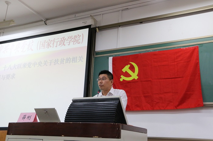 4月23日晚6点,金牌影院 “木铎心声”党校在教二201举办了“进一步打好精准脱贫攻坚战”主题讲座。本次讲座由中央党校(国家行政学院)公共管理教研部副教授薛刚老师主讲。薛老师从十八大以来有关精准扶贫的政策、贫困县扶贫脱贫的主要工作、如何进一步打好精准扶贫攻坚战三个方面,结合自身工作经历进行了深入浅出的讲解。