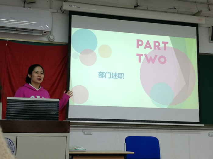 2017年4月9日下午6时,金牌影院 分团委在教二212举行了全员大会。分团委书记史佳鑫老师、分团委副书记刘蓓、全体部长以及干事参加了本次大会。 首先,分团委副书记刘蓓向全体成员表示了热烈的欢迎。紧接着进入愉悦的游戏环节,每一位同学都积极参与其中,进一步相互了解,活跃了大会的气氛。 之后,副书记助理和部长们依次进行工作述职,回顾了上学期各部门的工作成果,反思不足总结经验,并提出了新学期的工作计划。 述职结束后,分团委书记史佳鑫老师发表了讲话,肯定了每位干事的努力和各部长的成长,并对分团委成员们寄予希望:在做好自己工作的同时要认识自己的工作,学会从整个蓝图看待工作并在工作中保持创造性。 随后是读书分享环节。各部门的同学向大家分享了自己喜爱书籍的核心内容并进行了自己独到的解读。分享过后,同学们还获得了分团委赠送的书以作鼓励。 最后在副书记刘蓓对本次活动进行总结并表达了对全体成员的期许之后,本次大会在愉悦的气氛中圆满结束。 本次大会的召开,大家不仅增进了彼此的交流,收获了阅读的感悟,对新学期的工作也有了更清晰的认识。相信在全体成员的努力下,金牌影院 分团委未来能够更好地开展工作、服务同学。